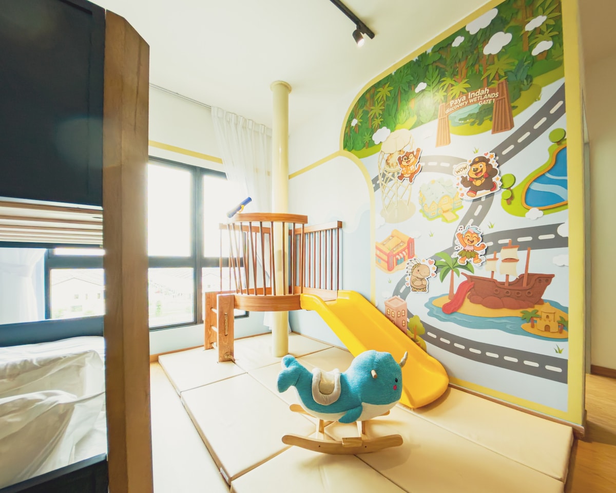 ¡Te damos la bienvenida a tu hogar lejos de casa! Perfecto para familias pequeñas con niños, este espacio cuenta con una acogedora sala de estar con una esquina para niños, un proyector y una pantalla de proyector de 80 pulgadas. Disfruta de la comodidad de una cocina totalmente equipada y elegante. La distribución de las camas incluye un sofá cama resistente y un colchón adicional en el suelo, con capacidad para alojar cómodamente hasta cuatro huéspedes. Se requiere un depósito de seguridad de 100 RM antes de la llegada y se te reembolsará si no hay daños o incumplimiento de las reglas.