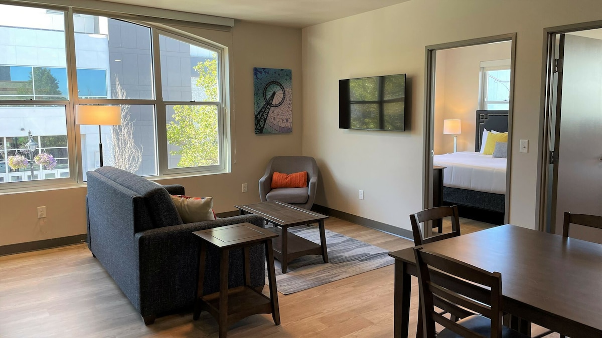 Bienvenido a su retiro ideal en la ciudad en el centro de Spokane. - Departamento recientemente renovado con diseño urbano-chic. - Techos expuestos de 13 pies para una sensación espaciosa. - Perfecto para profesionales, parejas y familias que viajan. - Totalmente abastecido para una estadía cómoda. - Televisión inteligente - Café gratis. - Lavadora y secadora en la unidad. - Estacionamiento de pago al otro lado de la calle.