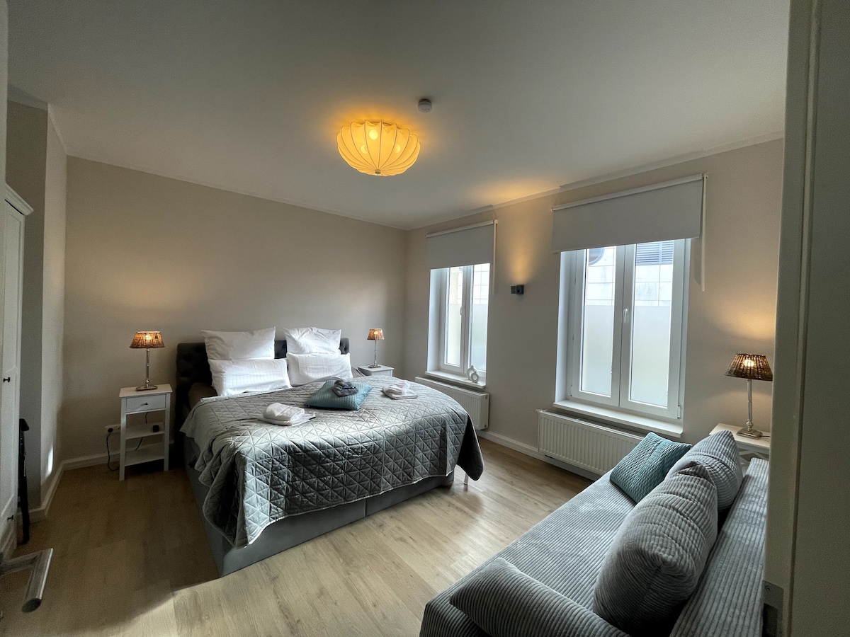 Su apartamento de 80 metros cuadrados tiene una sala de estar luminosa con cocina abierta, dos dormitorios y un baño con ducha y bañera. El apartamento está situado en el centro del paseo marítimo y desde el balcón se puede disfrutar de una vista fantástica del puerto y el castillo, al que se puede llegar en pocos minutos a pie. El cercano centro de la ciudad ofrece teatros, museos y muchos establecimientos gastronómicos. Su coche se puede aparcar en el garaje subterráneo a petición. Heike y Dirk esperan su visita.