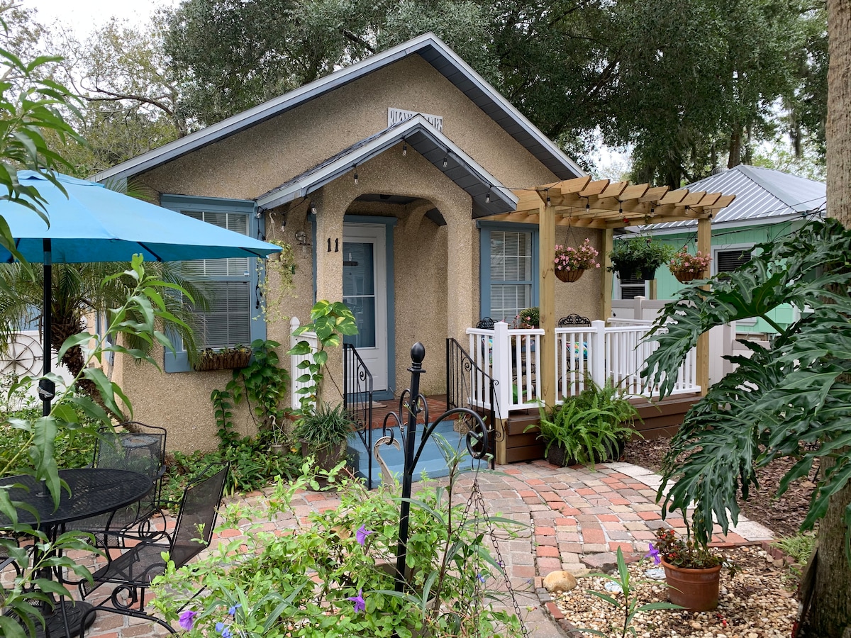 Stunningly renovated cottage combines modern amenities with vintage charm... * 2 master suites with queen beds * Quiet neighborhood walking distance to explore The Nation's Oldest City * Clawfoot tubs inside and out (along with showers, of course!) * Big screened-in porch with hanging daybed * Off-street paved parking * Fully fenced backyard, Weber grill, gas fire pit * Fast Wi-Fi and Smart TV * 2 blocks to Fish Camp, Ice Plant, LaNuvelle, trolley stop * 10 minute walk to central downtown