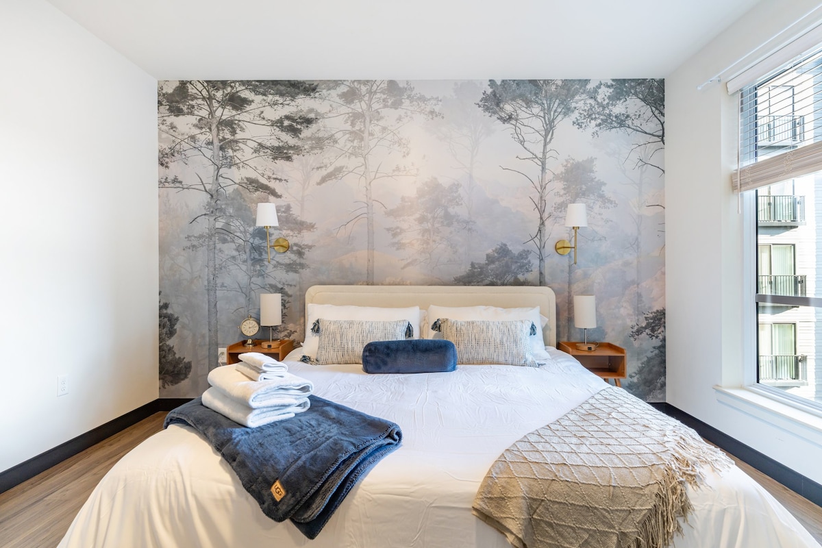 Stylish 2-bed, 2-bath designer retreat in the heart of St. Louis for 5. Walk to Busch Stadium, Enterprise Center & the Arch! Enjoy sun-drenched rooms with high ceilings, a private espresso bar, and free secure parking. Perfect for sports fans, concert-goers, and city explorers seeking a unique, walkable home base.