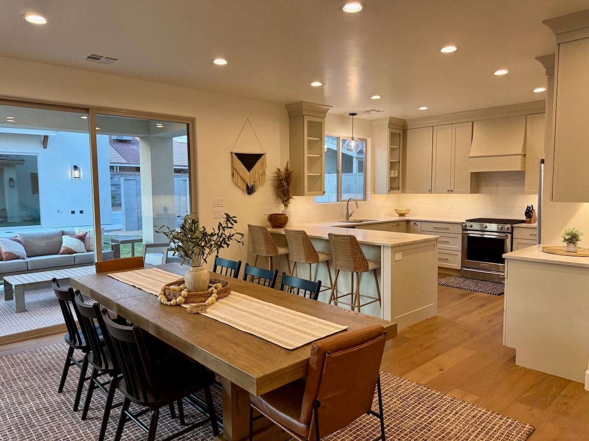 ¡Siéntete como en casa en tu próxima escapada a St. George! Ven a alojarte en esta casa unifamiliar de alta gama amueblada y decorada con buen gusto. ¡Esta es una base increíble para todas tus aventuras en Red Rock! ¡Este alojamiento es perfecto que necesita una familia o un grupo pequeño para recargar energías y relajarse! Tiene capacidad para 8 personas cómodamente. Disfruta del patio trasero aislado (y totalmente vallado) con césped artificial y una bañera de hidromasaje privada después de un día de diversión bajo el sol de St George. ¡Videojuego Sega Outrun para que los niños se entretengan durante horas!