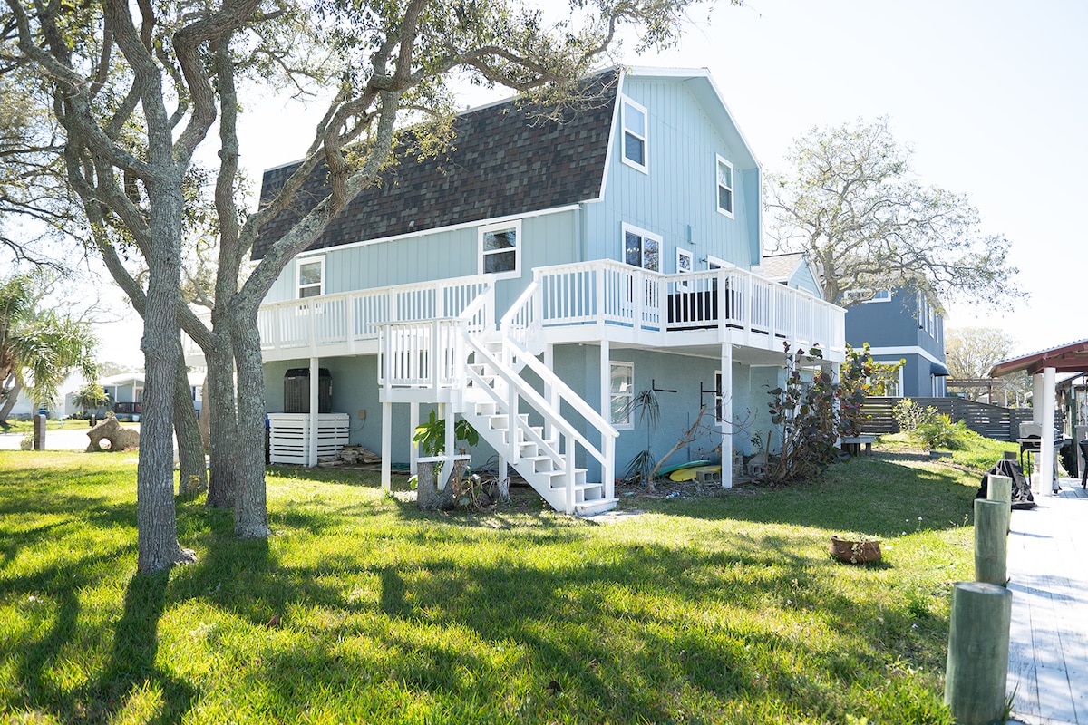 * Construido en 2023: muebles y sábanas de lujo en la costa * Destacado en la revista Good Housekeeping de 2024🌟 * 2 suites tamaño king (1 en cada piso) | 2 dormitorios tamaño queen | 3,5 baños * Piscina privada de agua salada y spa/jacuzzi. * Cabaña junto a la piscina | Cocina exterior | Porche delantero * Bicicletas, juguetes de playa, sillas de playa. * Paisajismo tropical exuberante * 0.2 millas - hermosa playa tranquila * 5,5 millas: centro histórico de San Agustín, ¡la ciudad más antigua de Estados Unidos! * 0.2 millas - Cap's Restaurant para cenar al atardecer en el agua