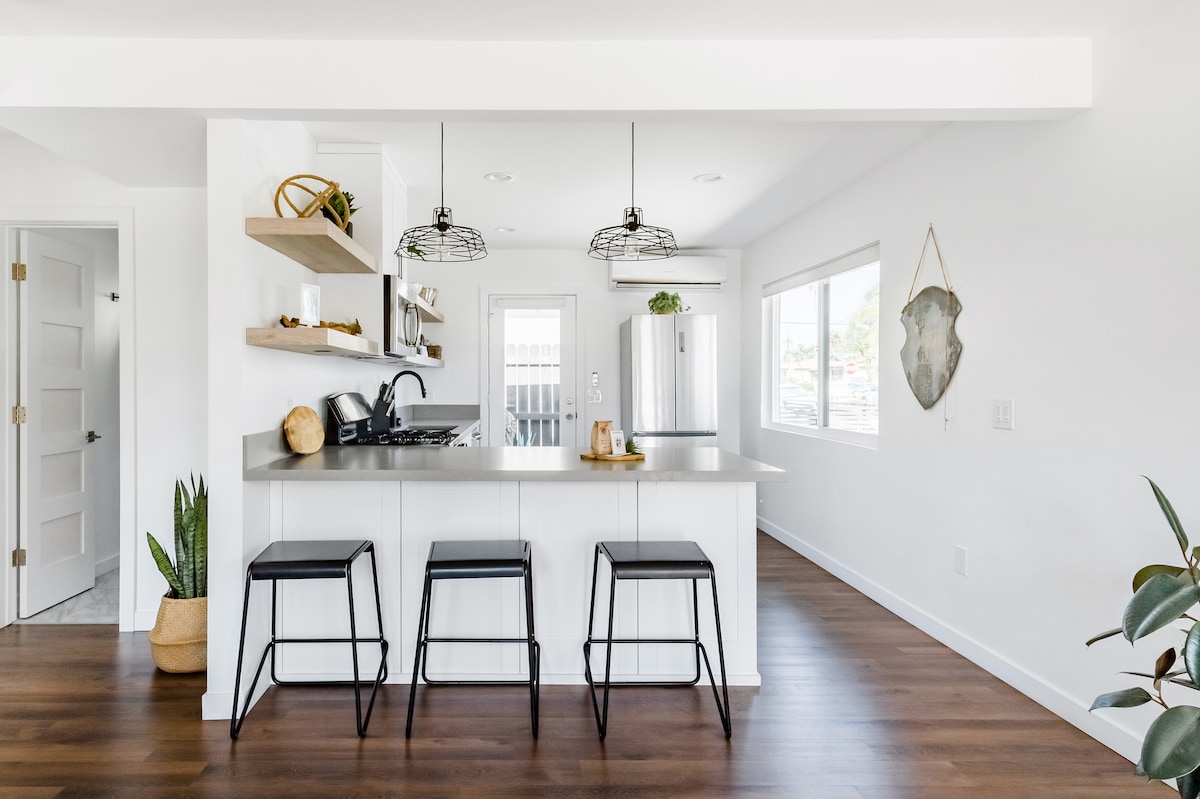 Relájate en nuestra casa totalmente equipada, bellamente amueblada, 3 dormitorios, 3 baños en el centro de la relajada Imperial Beach. Saborea una copa de vino mientras contemplas la puesta de sol desde el balcón privado con vistas al muelle y al mar. Prepara una comida gourmet en la exclusiva y moderna cocina o camina hasta animadas cervecerías artesanales y excelentes restaurantes. Fácil acceso al centro de la ciudad, ¡a solo 20 minutos del aeropuerto! Entrada con teclado, aparcamiento privado gratuito en garaje cerrado, apto para niños, wifi de alta velocidad.