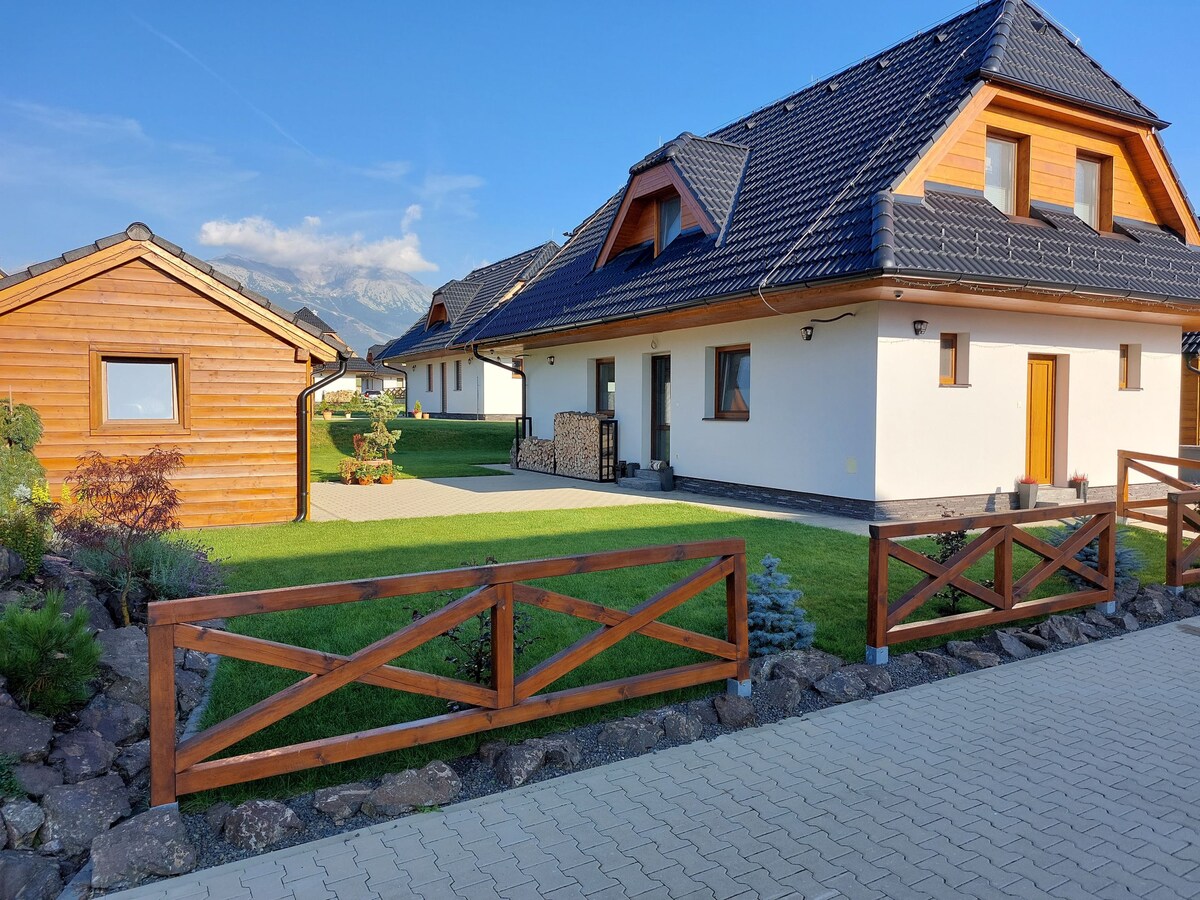 Užite si oddych v novom dome v srdci Tatier vo Veľkej Lomnici. Dom je ideálny pre rodiny aj väčšie skupiny (max 12 osôb). Kapacita spální je 8 hostí (+ ďalšie 4 spacie miesta sú v podkroví - je tam však menej komfortný prístup pomocou elektrických schodov). Dom ponúka súkromie, bezplatné parkovanie, kompletne vybavenú kuchyňu, detský kútik a oplotenú záhradu so zimnou terasou. Je perfektným miestom pre dokonalý relax. Nachádza sa len 10 km od lyžiarskeho strediska v Tatranskej Lomnici.