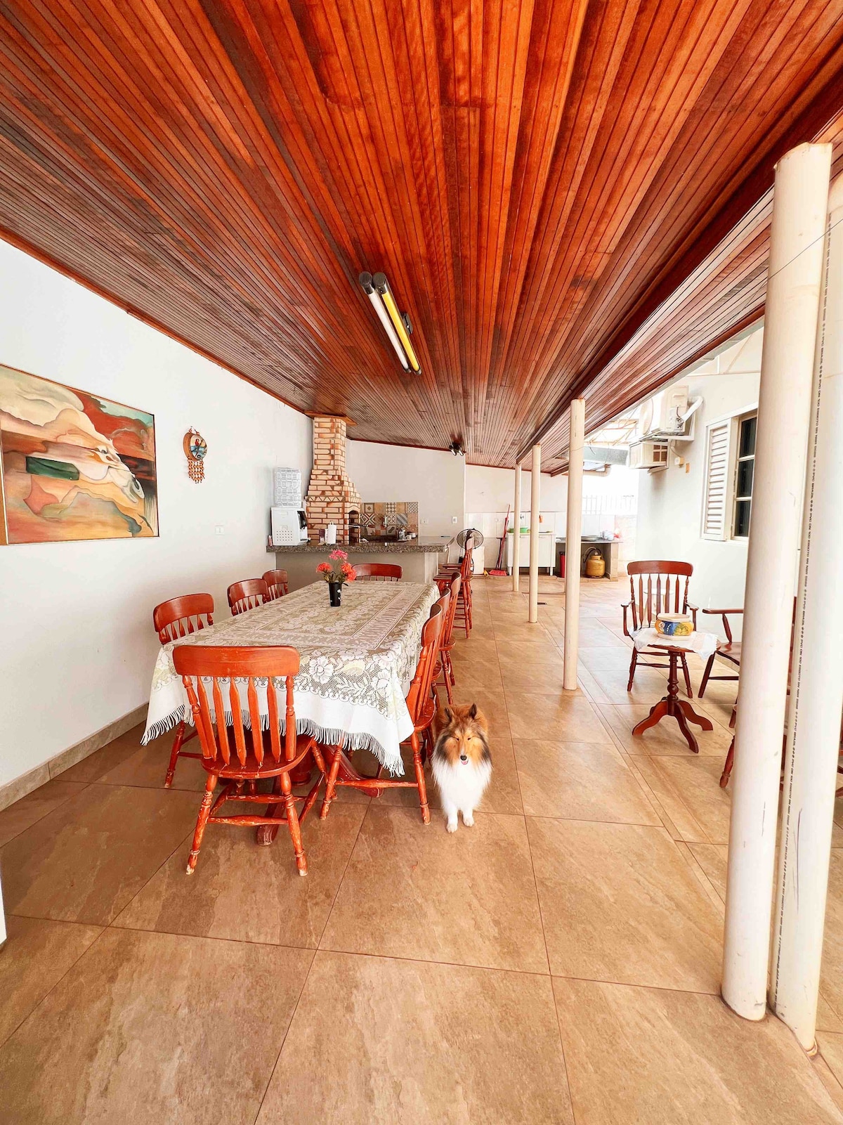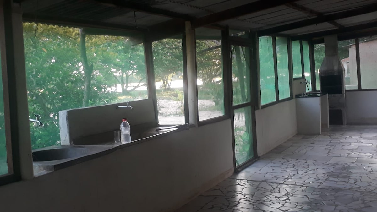 A casa é ótima para quem gosta de espaço e privacidade.Possui estacionamento Ar condicionado,internet.O quarto possui 01:cama de casal ,01 beliche e 01 de solteiro.Oferecemos aos hóspedes forros de cama e banho.Tem uma varanda ampla cozinha gourmet,fogão Cooktop,ducha externa,geladeira,forno elétrico 50 litros,liquidificador,sanduicheira grill, ferro de passar roupas.E todos utensílios necessários para o preparo dos alimentos e churrrasqueira,fica 5 minutos do centro da cidade,check in livre.