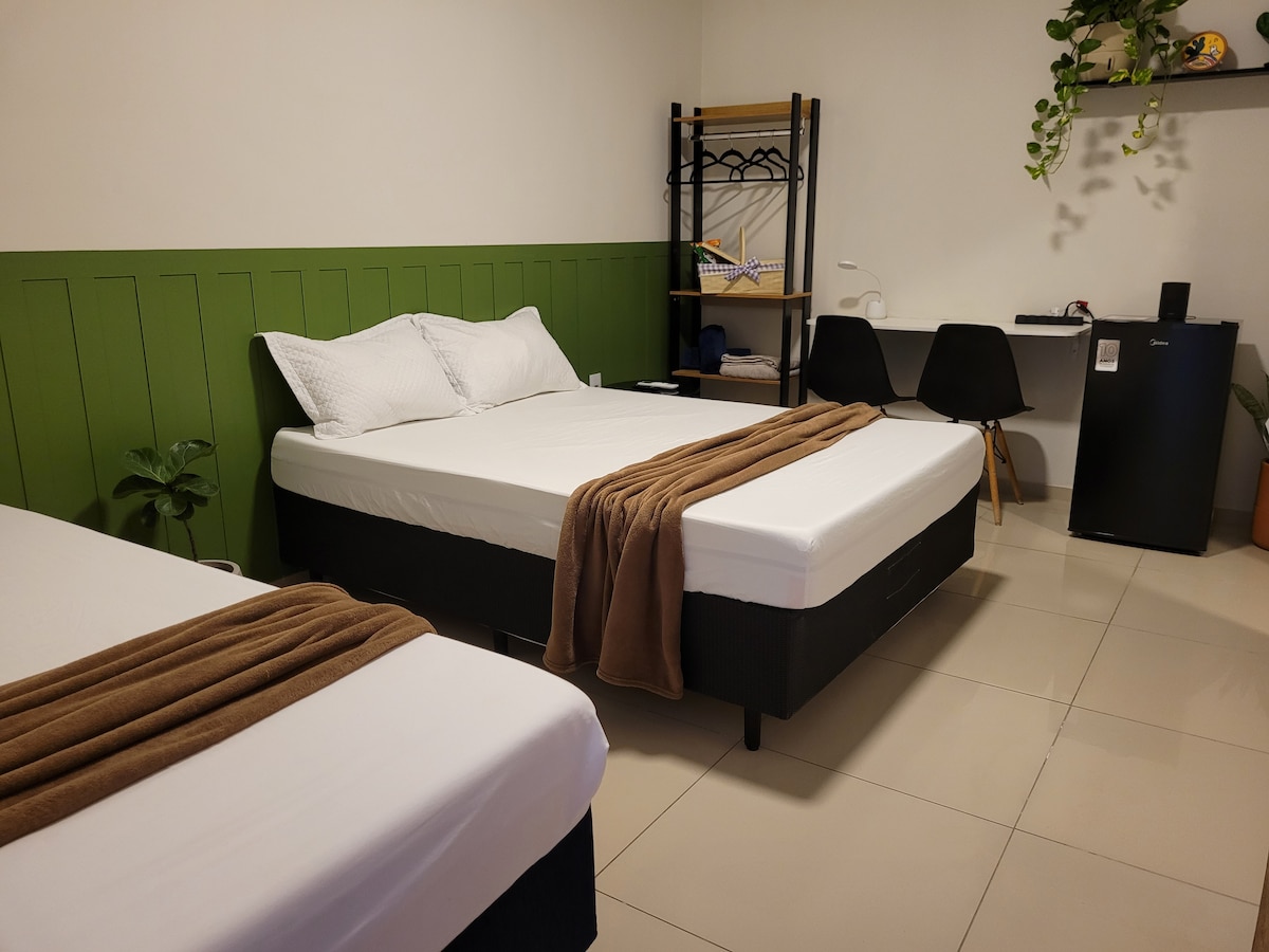 O espaços quartos suítes de pousada com entrada externa sem compartilhar absolutamente nada entre hoapedes ou funcionários. Temos estacionamento interno e o melhor custo benefícios de longo prazo da região, leia nossas classificações para entender melhor o que os hóspedes compartilham. ficamosngrato pela preferência. Pousada Salsamba
