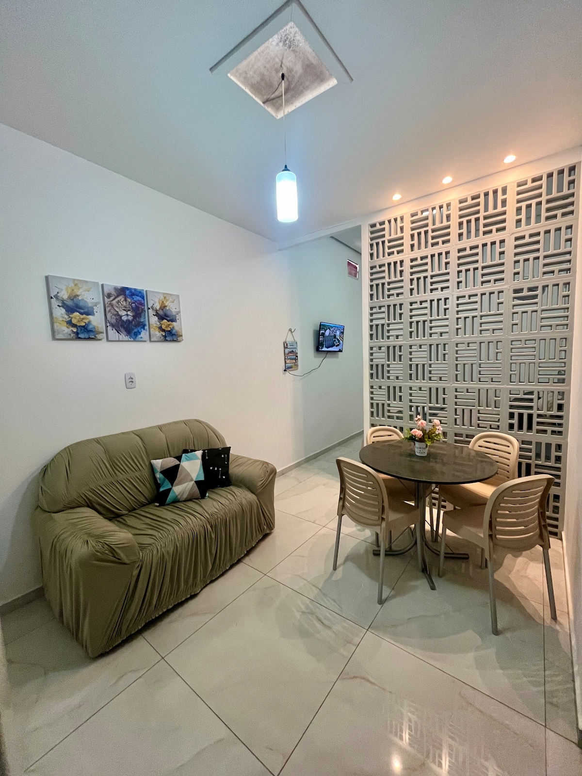 Disfruta de un loft acogedor y completo diseñado para una estancia cómoda y práctica. La habitación cuenta con una cómoda cama y aire acondicionado. La cocina está equipada con un fregadero de granito, armarios, cocina, microondas, minibar, tostadora y licuadora. Relájate en la zona de ocio con piscina después de un día explorando Natal. Situado en el barrio de Capim Macio, cerca de supermercados, bares, restaurantes, centros comerciales y la playa de Ponta Negra. ¡Reserva ahora y haz que tu viaje sea inolvidable!