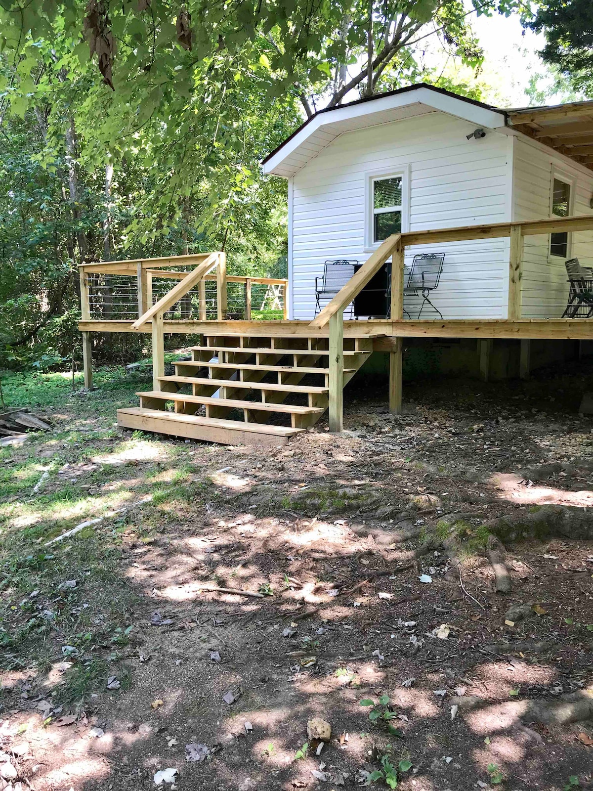 Si estás buscando un lugar para relajarte y desconectar, o tal vez un refugio romántico, nuestra pequeña casa de campo en el bosque ofrece un espacio privado e íntimo perfecto para tu próxima escapada. Wooded Hideaway es una casa de 1 dormitorio y 1 baño enclavada en los árboles en aproximadamente 4 acres a menos de una milla del lago Center Hill. Disfrutarás de total privacidad en la terraza delantera con hermosas vistas al atardecer, una cocina bien equipada, sala de estar con chimenea de leña y cama tamaño king para dormir perfectamente por la noche.