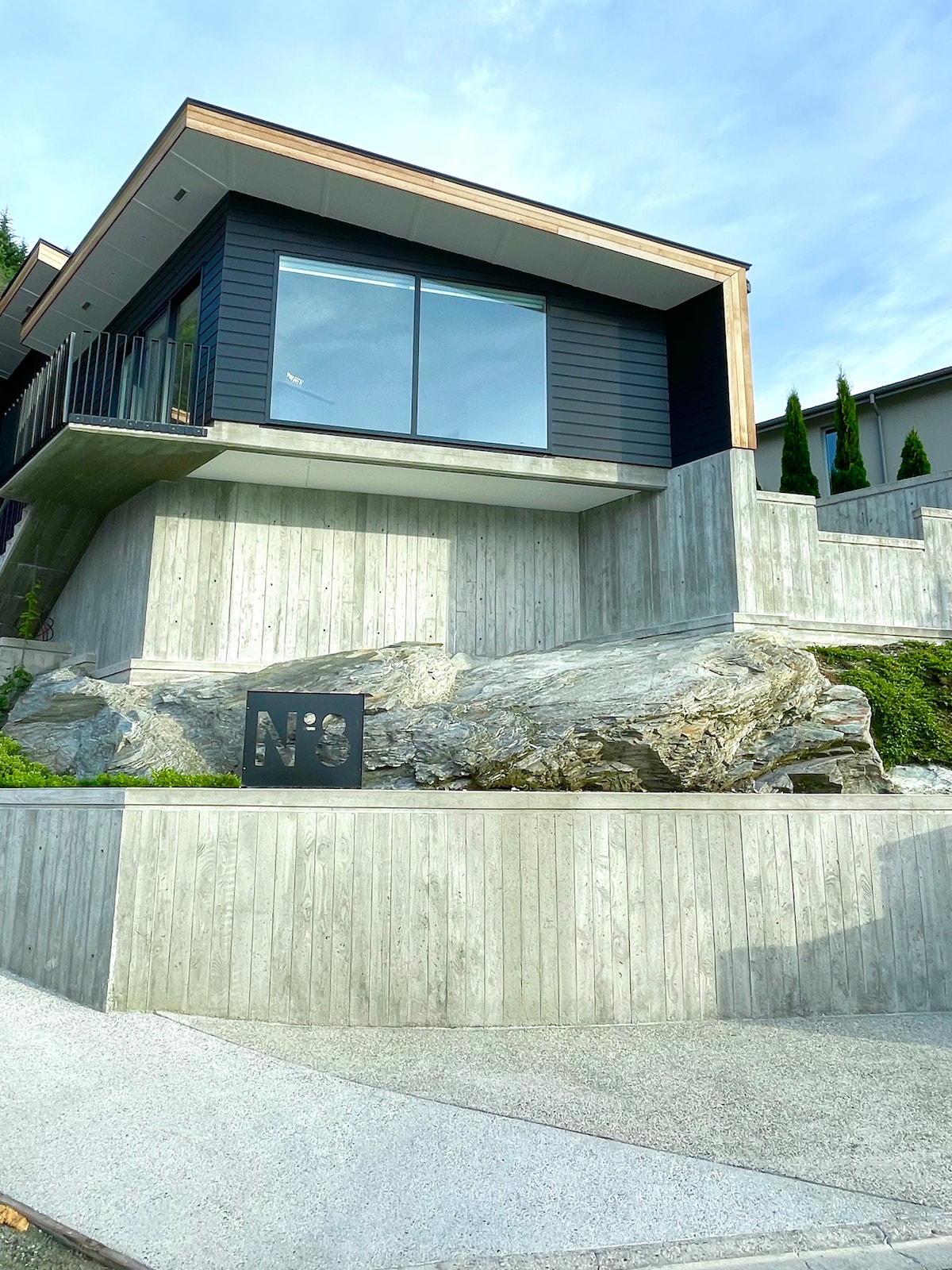 No.8Queenstown incluido en la Guía de Nueva Zelanda 12 de los mejores alojamientos únicos en la Isla Sur. Ubicada sobre la reluciente extensión del lago Wakatipu, esta refinada residencia privada ofrece una escapada elegante diseñada exclusivamente para parejas que buscan tranquilidad y belleza. Este refugio, cuidadosamente diseñado y arquitectónicamente en sintonía con su entorno, combina el lujo minimalista con el drama panorámico. Las amplias ventanas invitan a disfrutar de las vistas panorámicas del lago y las montañas en cada rincón del espacio.