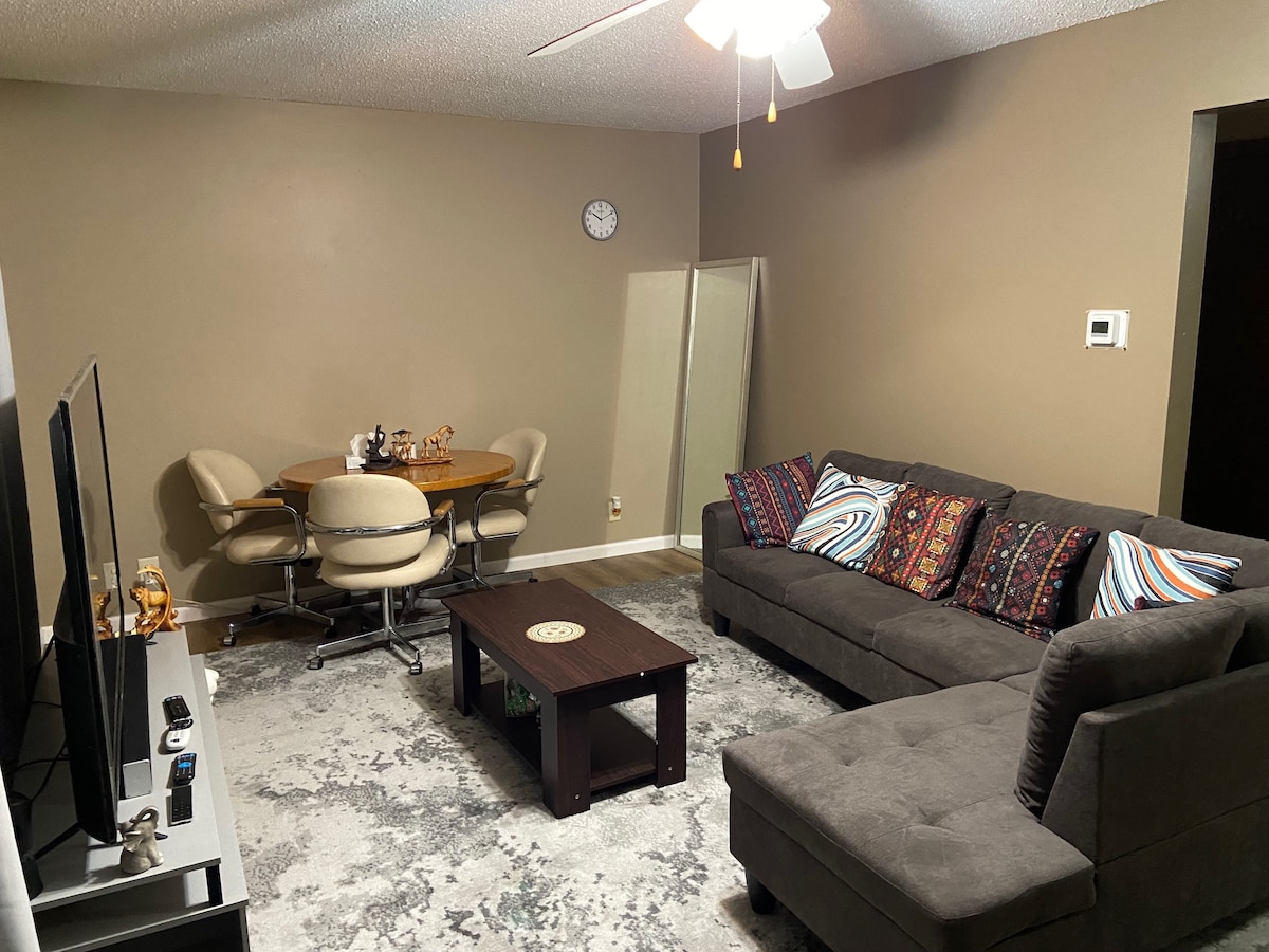 Ven y quédate aquí, más limpio y con muchas más comodidades que cualquier hotel. Este apartamento está limpio y es agradable. También cuenta con internet de fibra óptica, un escritorio, un televisor inteligente de pantalla grande, una ducha con suelo radiante en el baño y lavadora/secadora. Se accede a este apartamento a través de una lavandería de uso común. Al otro lado de la calle hay un parque con senderos para caminar, parque infantil, arroyo, canchas de tenis, etc. Brooktree Golf y el centro de la ciudad están a unas manzanas de distancia. Esta unidad tiene un valor excepcional, más aún para estancias largas.