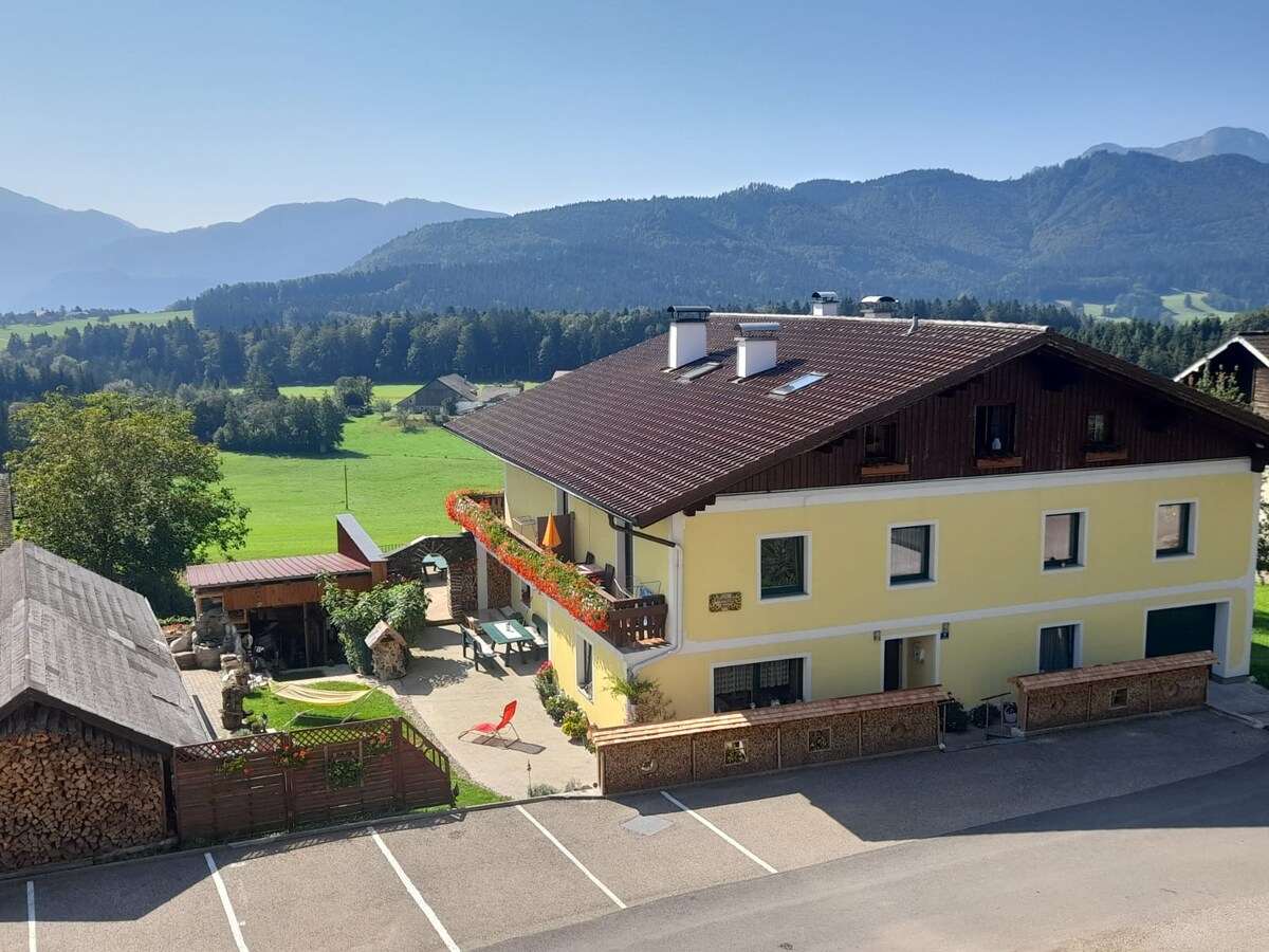 Hermoso y acogedor departamento en el campo. Ubicación sobre la línea de niebla cerca del hermoso Attersee. Maravillosas oportunidades para practicar senderismo y natación en las inmediaciones. Esquí de fondo justo en frente de la casa. Pequeño telesilla cercano. Solo se puede llegar a la propiedad en coche. El lago Attersee está a 4,5 km y el lago Mondsee a 12 km. Salzburgo a 41 km, Hallstadt a 59 km. Asado y desayuno a pedido en cualquier momento. Desayuno opcional: 10 € por persona.