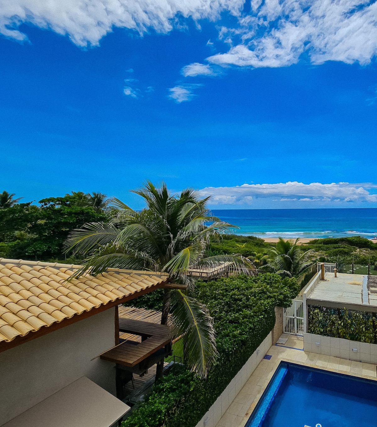 La casa está a 25 minutos del aeropuerto de Salvador. Está frente a la playa casi desierta de Busca Vida, dentro de un condominio discreto y seguro, y en medio de mucha naturaleza. La arquitectura a base de madera ofrece mucha comodidad y un clima tropical alrededor de muchos cocoteros y una piscina increíble.