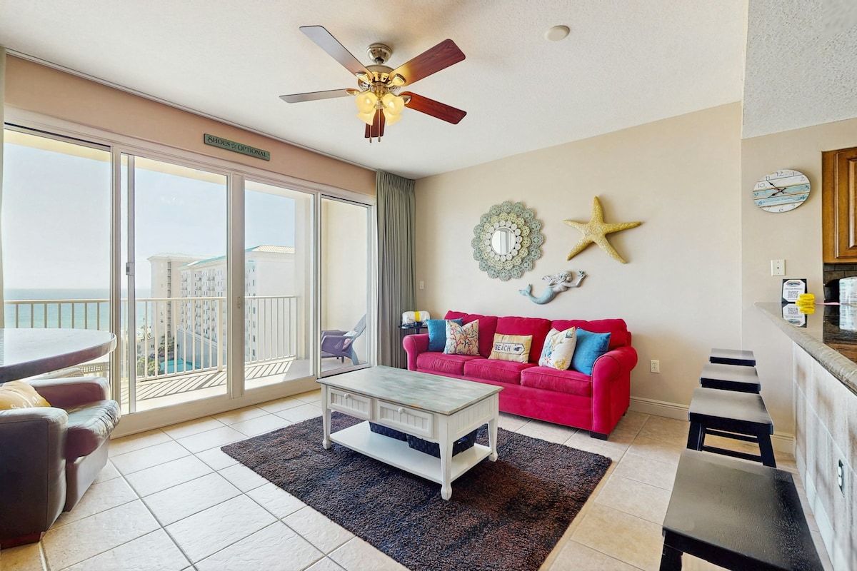 ¡Disfruta del arte, la naturaleza y la aventura de Miramar Beach en nuestro encantador apartamento con acceso a la playa, piscinas climatizadas, gimnasio con sauna, golf, tenis, pickle ball, baloncesto, restaurantes y vida nocturna sin salir del complejo! Cuando te aventures a salir, las compras en Silver Sands Outlet Center están a una milla de distancia, y Grand Boulevard y Sandestin Beach Resort están a 3 millas de distancia. Termina tu relajante día contemplando la espectacular puesta de sol con una copa de vino y tus seres queridos en el balcón.
