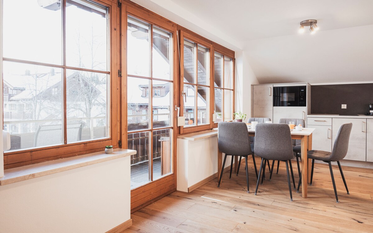 -Zweigeschossige Maisonette-Wohnung -Lichtdurchflutetes Wohnzimmer mit großen Fenstertüren, Südausrichtung und Balkon -Küche ist halb offen mit Wohnzimmer verbunden und läd zum angenehmen Kochen ein -Schlafzimmer in oberer Etage mit charmanter Dachschräge -Achtung steile Treppe. Siehe Fotos. Direkt in/um Weitnau -Rewe und Netto -Im Winter Skilift & Top Loipen-Netz -Im Sommer viele moderaten Wanderwegen & erstklassigen Moutainbike-Routen