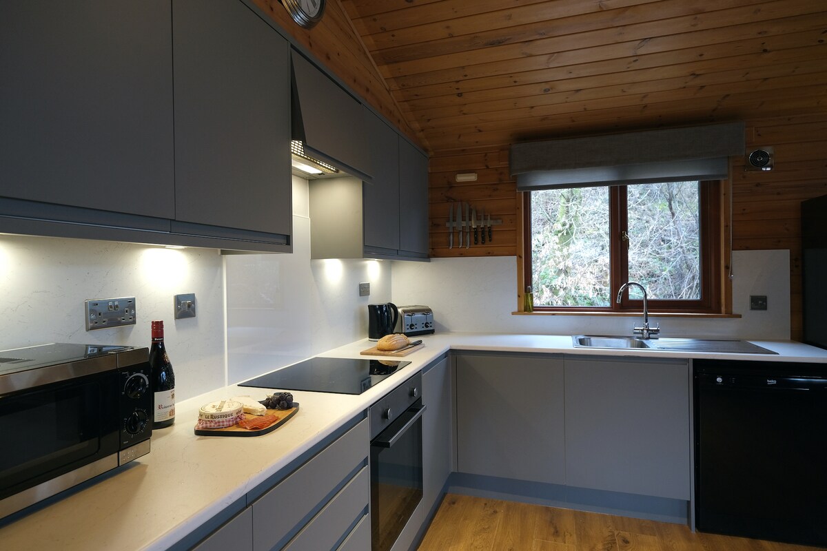 Party Lodge - luxury 4-bedroom lodge with private hot tub Accommodation This lodge has 4 bedrooms, organised to provide single-bed sleeping arrangements for 10 people. Exclusive use of own hot tub. Lodge has 10 single Inventory Fully-fitted kitchen with hob, double oven, fridge, freezer, washing machine, dishwasher, utensils and cookware for 10 guests. 55 inch HDTV on the wall About this Lodge The Lodge provides a new level of space and comfort