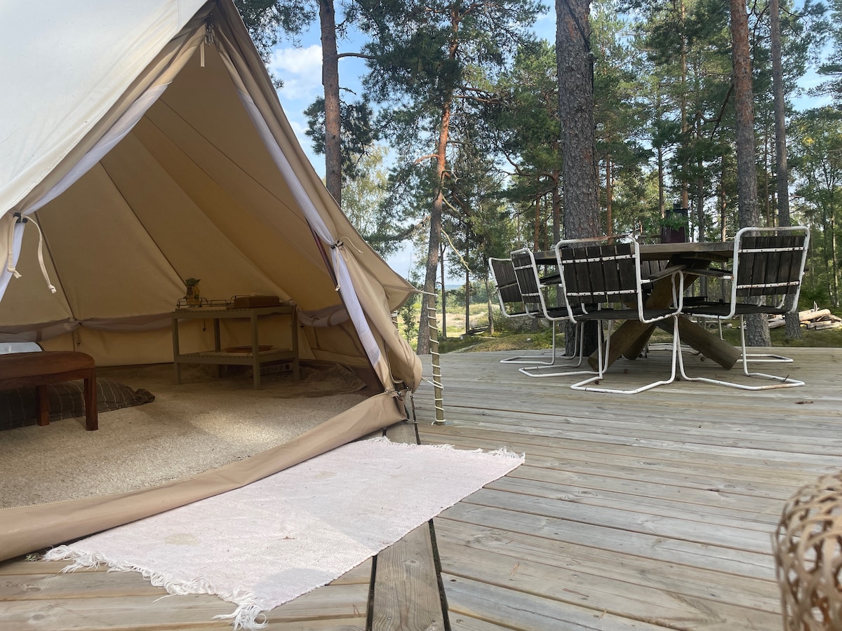 ¡Bienvenido a nuestra experiencia de tienda de campaña mágica en el bosque fuera del pintoresco Mariefred! Experiencia única en una tienda de campaña en medio de la naturaleza ¿Sueñas con relajarte en los brazos de la naturaleza sin dejar de querer tener servicios modernos? Esta exclusiva experiencia de tienda de campaña de Airbnb te ofrece el equilibrio perfecto entre las aventuras fuera de la red y la vida moderna. Descubre el encanto de vivir en medio del bosque en una tienda de campaña decorada con estilo. Desayuno más sencillo incluido. Disponible de mayo a septiembre