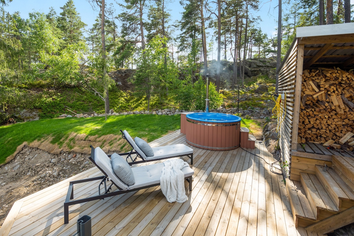 Casa frente al mar con sauna y jacuzzi en Tranholmen