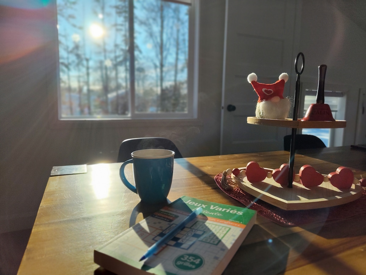 Venga a disfrutar de una suite tranquila en un entorno encantador, solo, en pareja o con su pequeña familia. Ya sea para teletrabajar o para disfrutar de los alrededores. A 2 minutos del Parque del Mont Bélair ⛷️🚶🏻(gratuito), a 5 minutos de los restaurantes, a 12 minutos del aeropuerto✈️, a 20 minutos del Village Vacance Valcartier 🏝️☃️ y a 25 minutos de Quebec 🌆 Viva también una experiencia termal en la sauna panorámica y disfrute de la gran terraza protegida de la intemperie para un pequeño descanso al aire libre.