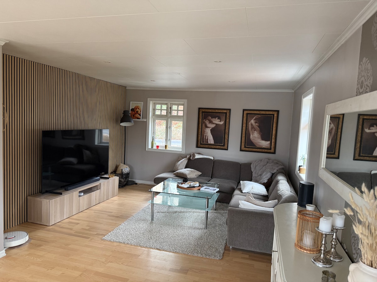 Godtar forespørsler om redusert pris etter lengde på oppholdet og gjester som bestiller flere ganger. Ta gjærne kontakt😊. Glem bekymringene dine på dette romslige og fredelige stedet. Huset er stort med stor hage som vil bli vedlikeholt av huseier. Carport. Over vei er det stor parkeringsplass. Huset er utstyrt med alle fasiliteter som raskt internett og tv til alle soverom og stue. I nærhet til sjø (10 meter) med flotte turområder, sentrum og strender. Sovesofa som rommer 2 (ekstra sengeplass)