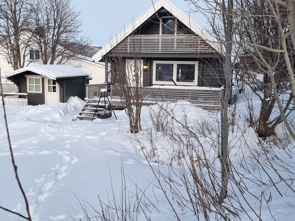 Cabaña ubicada junto al río en Strandbu Camping (a 90 minutos de Tromsoe). Disfruta de las luces del norte en invierno en nuestro entorno tranquilo. Hay una cocina en la cabaña (lavavajillas), así como inodoro y ducha. En el salón hay un sofá, chimenea y televisión por cable. Ropa de cama/toallas incluidas. También tendrás acceso a un edificio de servicio común con lavandería. Posibilidades de alquilar sauna y una casa de barbacoa. Acceso gratuito a un área de parrillas con refugio.