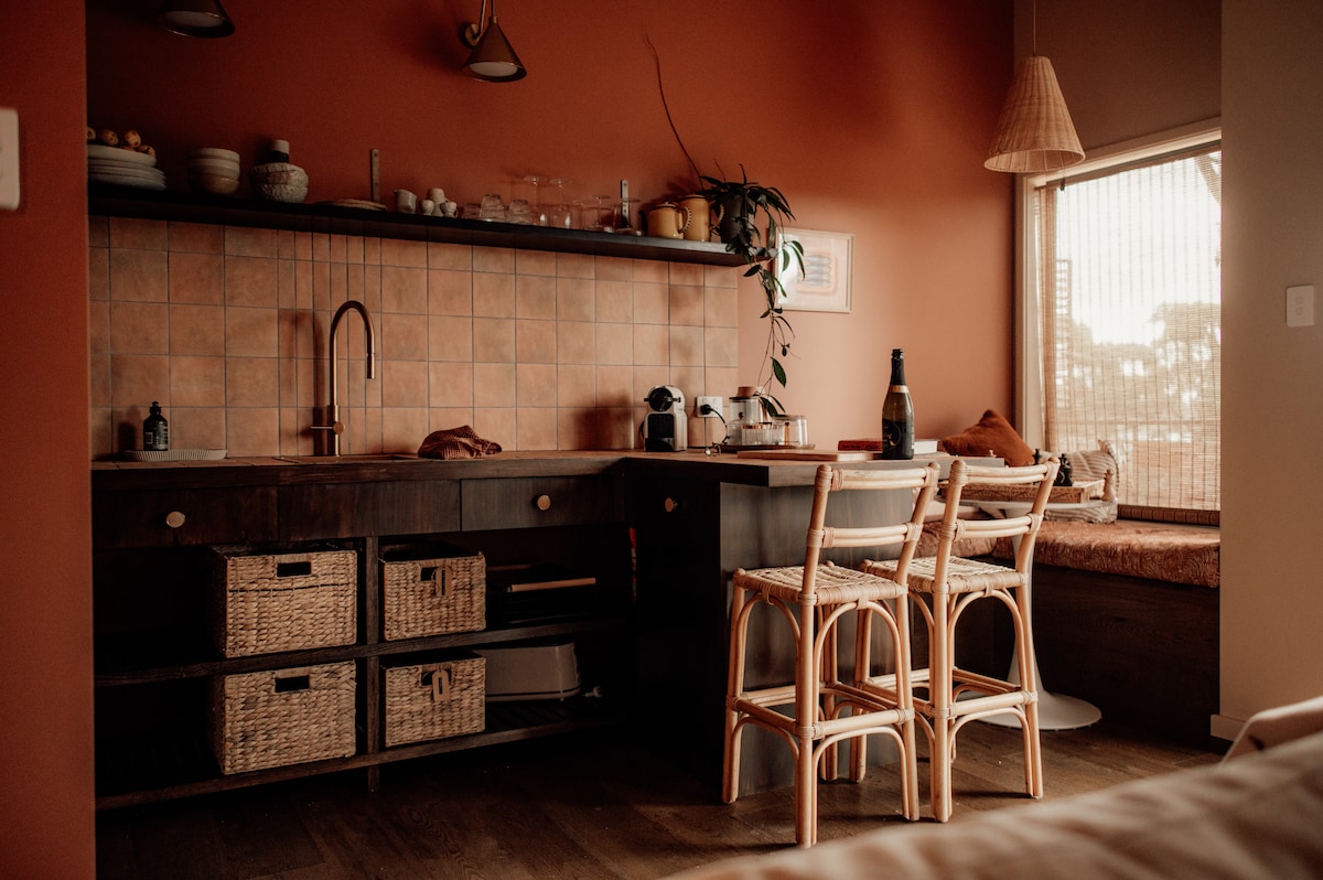 Escape to Dune Shack, a nostalgic 1970s Tasmanian retreat tucked behind the dune at White Beach. Relax in a secluded paradise with private beach access, hot stone sauna, and the soothing sound of waves just steps away. Perfect for couples or small groups, the shack blends 70s charm with modern comforts - from the cosy Nectre fireplace to a fully equipped kitchen and vibrant, relaxing interiors. The shack is an ideal base for exploring some of Tasmania’s most iconic bushwalks and beaches.