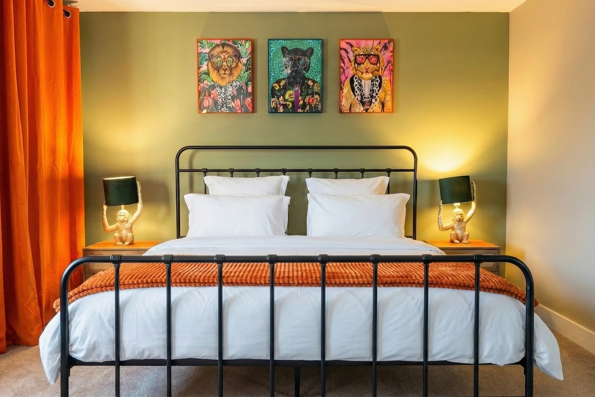 Escápate a tu hogar fuera de casa. Este alojamiento limpio y moderno con temática selvática ofrece todo lo que necesitás para disfrutar de una estadía inolvidable. Estaciona de forma segura en un garaje doble, relájate en camas acogedoras y cocina en una cocina totalmente equipada. Relájate con futbolín, juegos de mesa y un televisor cargado con PS4, cable y streaming. Ubicado en un vecindario tranquilo y familiar, estás a pocos minutos de tiendas, restaurantes y las principales autopistas. Perfecto para familias, equipos de trabajo y grupos para estadías cortas o largas. ¡Reserva hoy mismo!