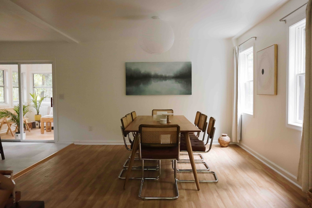 Perfect location for friends and family to walk, eat, drink, create, laugh, unwind and breathe. Sleeps 10 w/spacious rooms, fast Wi-Fi, board games, and dedicated Art Studio 4 bedrooms, full kitchen, dedicated workspace, soaking tub w/peaceful backyard space all in town. 3-Season Bonus! Cozy up on our enclosed porch with a glamping cot designed for 2 outdoor lovers. -Free parking 4 cars -Smart TV & streaming -Crib & family-friendly gear -5star Superhost, rapid replies