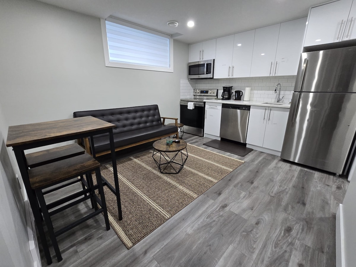 ¡Bienvenido a nuestra elegante y versátil suite de lujo de 1 dormitorio en el sótano, donde el estilo se combina con la comodidad en cada rincón! Ubicado en el corazón de la ciudad, este elegante refugio ofrece la combinación perfecta de comodidad y conveniencia. Con su diseño contemporáneo, servicios modernos y una entrada privada, experimentarás la mejor escapada urbana. Además, ¿por qué derrochar en una reserva de hotel cuando puedes disfrutar de aún más comodidad y calidez sin vaciar tu billetera? Nuestra suite tiene mucho que ofrecer.