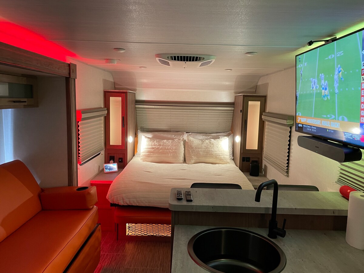 Si alguna vez te has preguntado cómo sería dormir/vivir en una autocaravana, esta es tu oportunidad. Este alojamiento tan extraordinario se te quedará grabado en la memoria. Es tranquilo y privado e incluye una cama tamaño queen, cocina completa, baño pequeño completo de 3 piezas, sofá, zona de comedor/trabajo y llegada autónoma. Máximo 2 personas. Todas las comodidades de un superanfitrión.