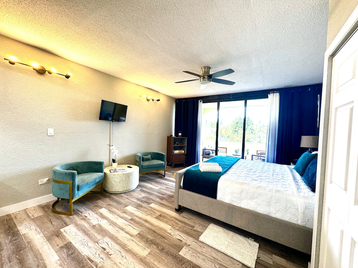 Nuestro condominio BELLAMENTE RENOVADO está justo en la playa, nada entre tú y una vista de un millón de dólares, sino 2 palmeras y 40 pies de arena blanca como el azúcar. Nuestro apartamento en el techo de la catedral ofrece todo lo que puedas desear: cocina completa, dormitorio principal, baño completo, loft para dormir con dos camas individuales y medio baño. También aire acondicionado central, wifi gratuito y sábanas orgánicas y artículos de tocador orgánico, y uso de un kayak. ¿Por qué no consideras un condominio de dos dormitorios alquilando por el precio de un dormitorio?
