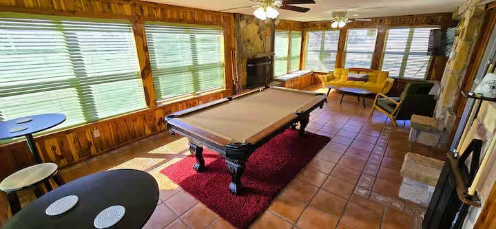 Escápate a Harmony Hills en Stratford, Oklahoma, una joya oculta en la campiña de Oklahoma a solo 2 horas de Dallas y a 75 minutos de Oklahoma City. Nuestro moderno refugio alpino se encuentra en lo alto de 320 acres de naturaleza prístina con más de una docena de estanques, pastos ondulantes y senderos boscosos. Ya sea que estés contemplando las estrellas desde la terraza al atardecer, sumergiéndote en el jacuzzi, pescando o explorando kilómetros de tierra abierta, esta es la escapada que no sabías que necesitabas. Ideal para parejas, familias o grupos pequeños.
