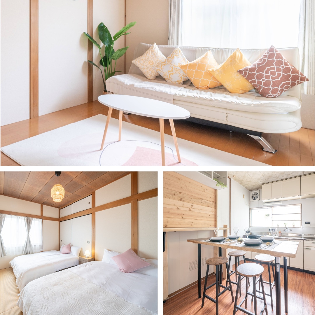 住ノ江駅から徒歩4分! 難波駅まで電車で10分! 日本文化を体験できる和風古民🏠 ◆お部屋のポイント 日本の古き良き文化を体感出来る和風の古民家 葛飾北斎の襖が自慢のリビング! 冬はこたつでゆったりおくつろぎいただけます。(こたつは12月~3月のみ) ダブルベッド1台、布団が2組 最大4名宿泊可能です! 高速 FREE Wi-Fi有! ◆立地、アクセス 世界的にも有名な住吉大社まで徒歩7分 関空から45分(乗換え1回) 難波駅まで10分 USJまで35分 アクセス抜群で大阪観光の拠点にも◎ ◆周辺施設 コンビニ2分 スーパーマーケット4分 銭湯4分 商店街7分 飲食店多数(レストラン、カフェなどMAP有) ◆キッチン お好きな食材をお持ちいただき、調理が可能です! ・冷蔵庫、冷凍庫 ・電子レンジ ・トースター ・ケトル ・フライパン ・鍋 ・調理器具(包丁、まな板、おたま、菜箸等) ・調味料(油、塩胡椒) ・食器類(お皿、おわん、コップ等) ・洗剤、スポンジ ◆無料サービス 珈琲、紅茶、緑茶、お水(人数分) ご自由にお飲みいただけます