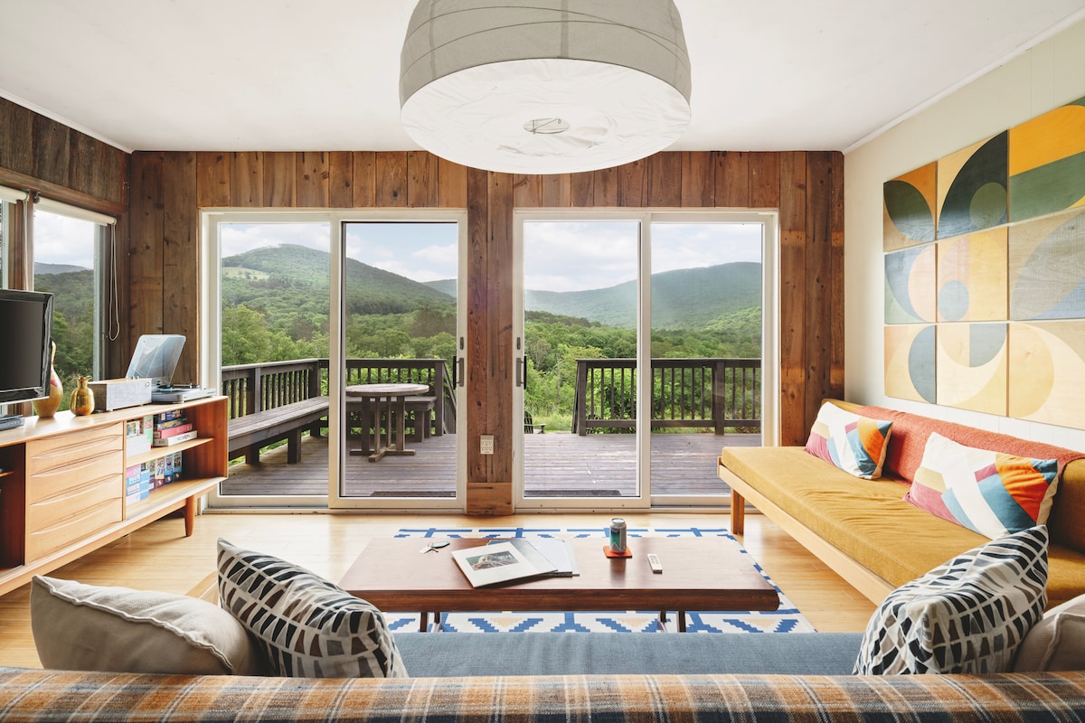 Cabaña de madera en lo alto de Catskills con vistas a las montañas