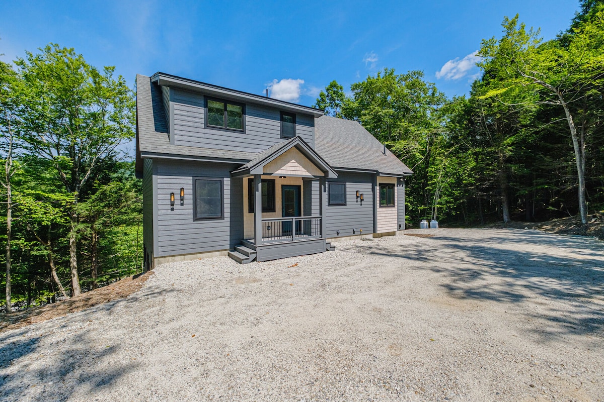 Three Peaks Cabin is a one of a kind Beautiful Mountain Home located in tranquil Bryant Pond Maine. Home sits atop peak that has direct views of the White Mountains, Lake Christopher and more as well as a stone throw away from world class skiing at Sunday River & Mt Abram. You'll feel right at home when you walk through the doors of this Bryant Pond vacation rental. The 3-bedroom, 2 -bath chalet-style house features 1625 square feet of beautiful living space complete with tasteful decor, with three large Pella French doors pointing directly west with views of Mt. Abram and Mt. Washington. Overlooking the Lake Christopher and surrounded by trees at the end of a cul-de-sac, this home offers families and groups plenty of outdoor recreation opportunities from boating and watersports to hiking, biking, and skiing! 65" Flat-Screen TV equipped with Dish Network Satellite, w/ Netflix, Prime Video, Dish Multisport w/ NFL Red zone | Gourmet Kitchen | Floor-to-Ceiling Windows From outdoor sports to downtown Bethel's unique shops and restaurants, this upscale retreat is the perfect getaway spot for families and groups! Bedroom 1: Queen Bed | Bedroom 2 Two Twin Beds | Bedroom 3: Two Twin Beds. OUTDOOR LIVING: Full private yard, with beautiful manicured grass and flowers during summer and fall months. Brand new Weber Gas grill, well designed fire pit with new Adirondack chairs & lovely outdoor sitting area with tables and chairs to sit and enjoy the view of the white mountains. INDOOR LIVING: 2 flat-screen TVs w/ streaming capabilities, Floor to ceiling fireplace which accompanies a large sectional couch to cozy up on the cool Maine nights next to the fireplace. dining table which sit four. The beautiful Gourmet Kitchen comes with stainless steel commercial gas range, Large stainless steel Refrigerator stocked with fresh neighboring Poland Spring waters, Stainless steel Dishwasher as well as an island where two additional seats are available. The downstairs bathroom also comes with a jacuzzi bath tub ready to relax the night away after a long day of enjoying western Maine festivities. KITCHEN: Fully equipped, drip coffee maker, keurig coffee & latte maker, toaster, cooking utensils, cutlery, spices, stainless steel appliances, dishware & flatware, breakfast bar GENERAL: Free Wi-Fi, central heat, central a/c, ceiling fans, towels/linens, complimentary toiletries such as Shampoo, Conditioner, Body Wash, Lotion, Goat Milk Soaps etc. & washer/dryer FAQ: Pet fee (paid pre-trip), stairs required for access PARKING: Driveway (4 vehicles) Three Peaks Cabin is located at 110 Yawkey Way, Bryant Pond, Maine. The home is located on a private street maintained by our HOA association. There are 6 total houses which included "Three Peaks Cabin". The property is located all the way up a steep paved road, last house on the right at the end of the culdesac.