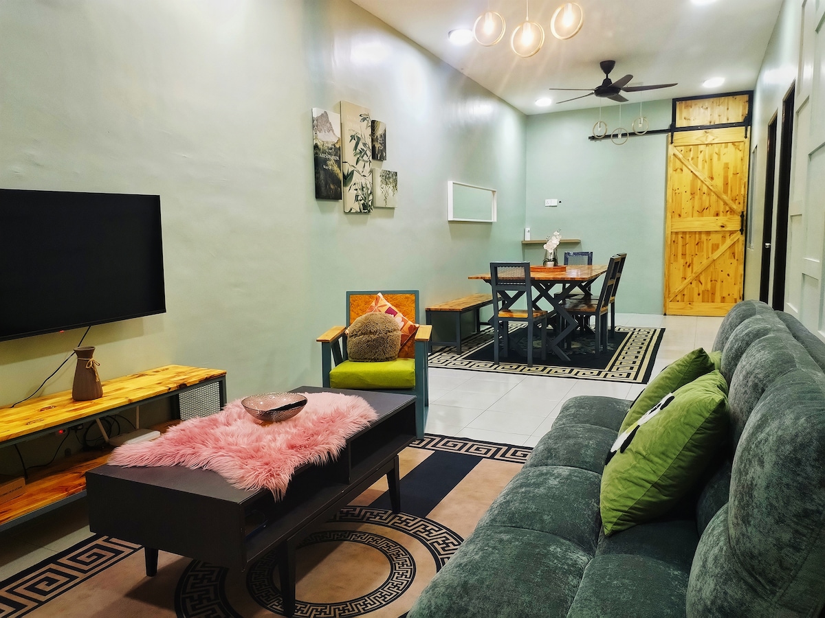 Ambiente acogedor y kampung con huerto en el patio trasero, minimalista y fresco en el centro de Bandar Teluk Intan. Viene con 3 habitaciones y aire acondicionado, TV, TV, cocina completa y mucha plaza de aparcamiento. 1 aseo disponible en el INTERIOR de la casa. Piso de una sola planta con aparcamiento fácil y cubierto. Fácil movilidad y apto para niños. Muy cerca de Menara Jam Condong Teluk Intan y de su encantadora ciudad (a 5 minutos en coche). Cerca de Hosp Teluk Intan (5 minutos en coche), Tesco (3 minutos en coche) y SMS Teluk Intan.