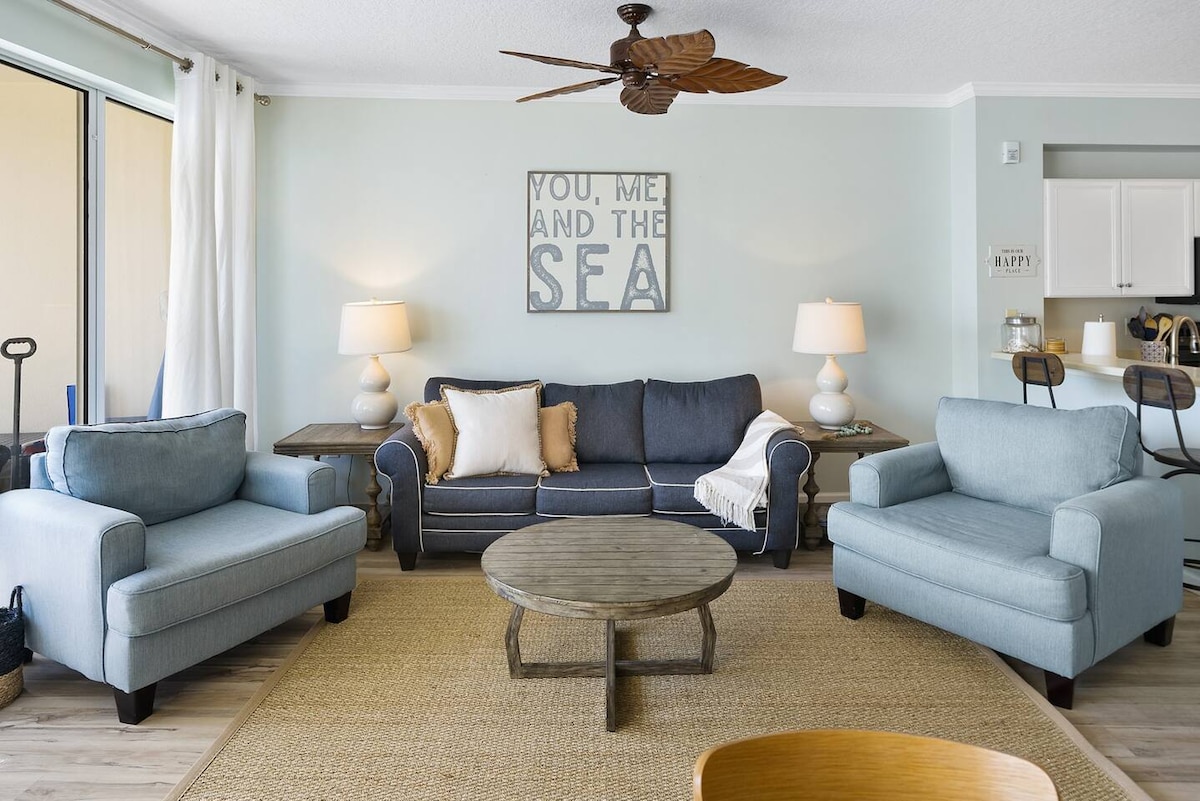 Lo más destacado que te encantará: • Departamento frente al golfo con vistas panorámicas de la costa • Balcón privado de gran tamaño para cenar y descansar • Servicio de silla de playa gratuito incluido (2 tumbonas + sombrilla, de marzo a octubre) • Capacidad para 6 personas: dos dormitorios tamaño king más una litera doble • Dos baños completos para mayor comodidad y privacidad. • Televisores inteligentes en todas las habitaciones y uno grande en el living • Cocina totalmente equipada con barra de café/té y suministros generosos • Lavadora/secadora en la unidad con artículos de lavandería de inicio • Servicios del complejo turístico: