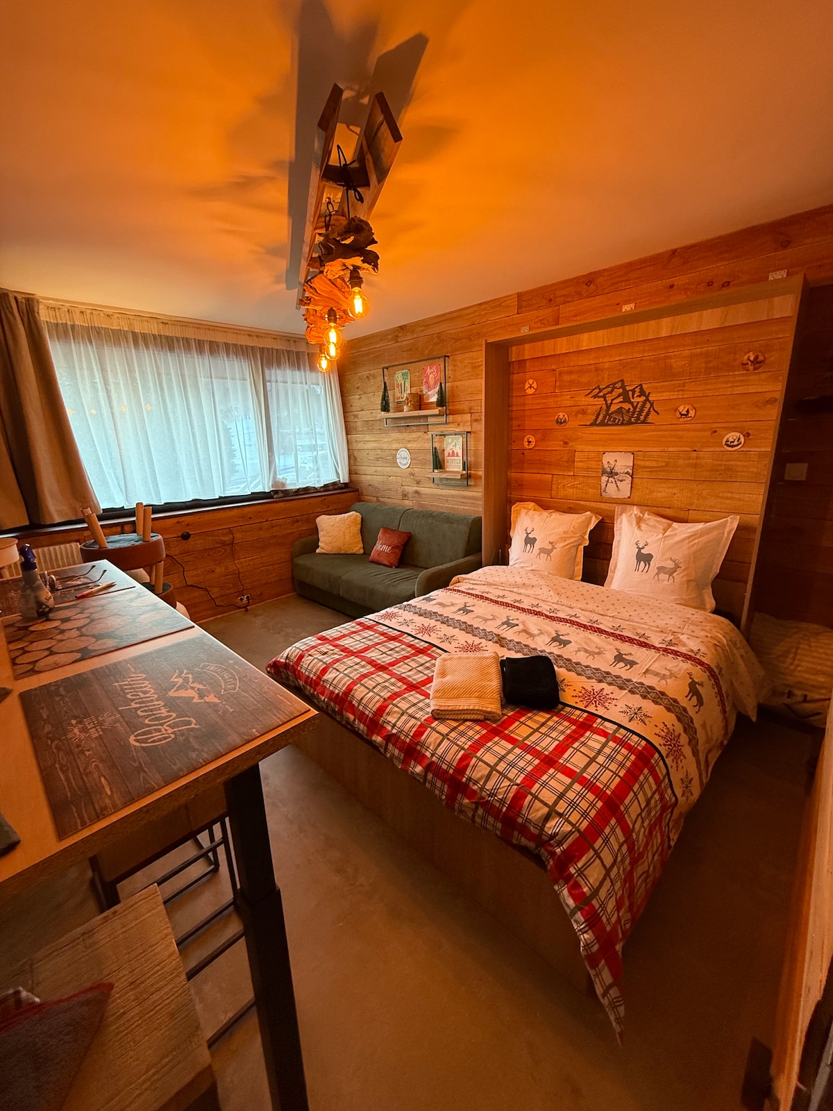 • Residencia Les Myrtilles Super Besse Centro • Apartamento de 35 M2 Centro Estación con dormitorio separado con capacidad para 4 personas. • SÁBANAS y TOALLAS NO INCLUIDAS • Wifi fibra • Vista Montaña - 2º piso • Habitación de 10 m2 con 1 cama de 160x200 + 1 cama de 90X190 • Habitación principal con cocina equipada (horno, microondas, placa de inducción,..) + 1 sofá cama 140X190. • Cerca de todos los servicios. • Vivienda para fumadores. • No acoja mascotas. • Llegada y salida independientes a través de una caja de llaves.