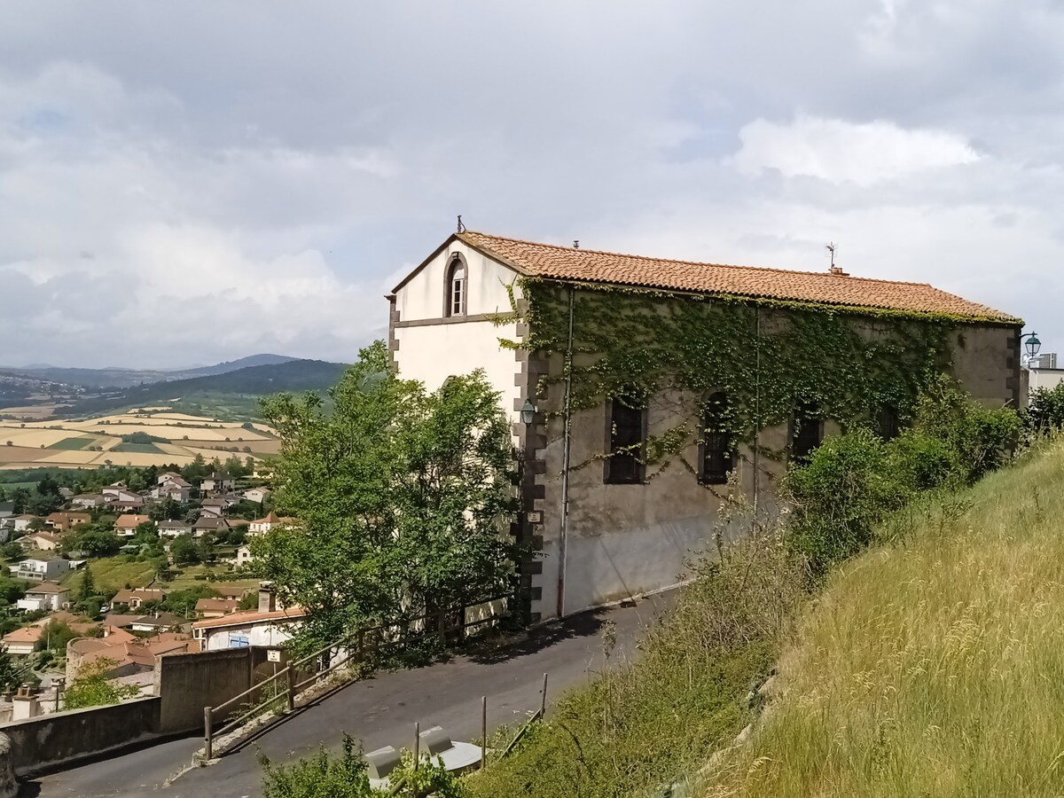 Studio sans prétention via escalier colimaçon extérieur, au 1er étage d'un hotel rénovée. Arrivée autonome, entrée indépendante, DRAPS ET SERVIETTES FOURNIS (et couette et oreillers). Idéal pour faire le tour du parc des volcans d'Auvergne en logeant dans un village calme. Climatisation, Lit SIMBA 2x2m, TV LG OLED 55", petit réfrigérateur-congélateur, micro-ondes, évier, lave vaisselle, DYSON V8. Café et thé avec machine à café SENSEO, et bouilloire. Salle de bain, avec WC et lave mains.
