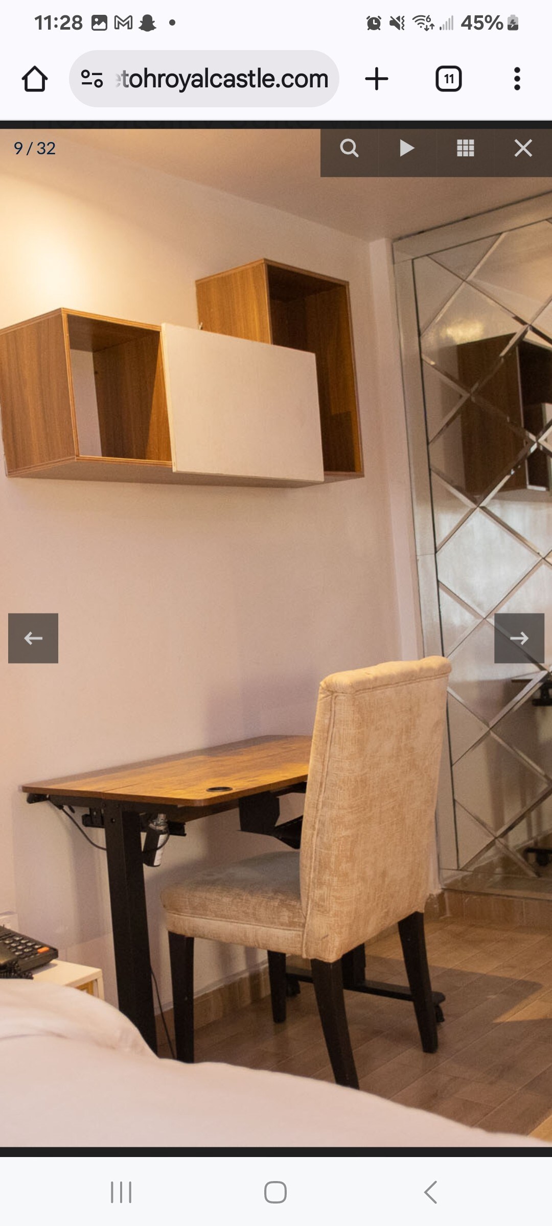 Stay in the heart of Surulere, Lagos, just minutes from Shoprite Leisure Mall, National Stadium, vibrant markets, and top restaurants. This stylish Super Deluxe Room combines luxury and comfort with plush bedding, elegant décor, and modern amenities. Unpack in a sleek wardrobe with full-length mirror, work remotely at the dedicated desk with fast WiFi, and relax in your private retreat. Perfect for couples, solo travelers, or business guests, it’s a cozy haven and a true home away from home.