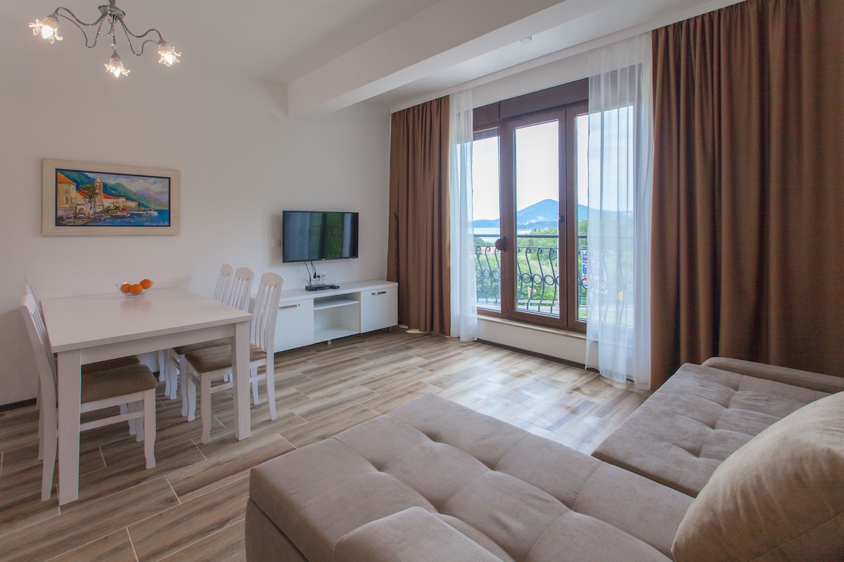Hermoso apartamento con excelentes vistas a la bahía de Boka y Kotor. El apartamento está amueblado de forma moderna, tiene una terraza ideal para una estancia relajada y una excelente ubicación. La playa está a 50 metros del alojamiento. Estamos situados a 1,4 km del casco antiguo; yendo a Prcanj. El hospital, la policía y el correo están a 300 metros. Los bancos están en el casco antiguo. El supermercado más cercano está a 300 metros. Los aeropuertos están a distancia de: Tivat-7 km, Podgorica-90 km, Cilipi (Croacia)-70 km. Bienvenido, Kotor es historia viva en una bahía espectacular.