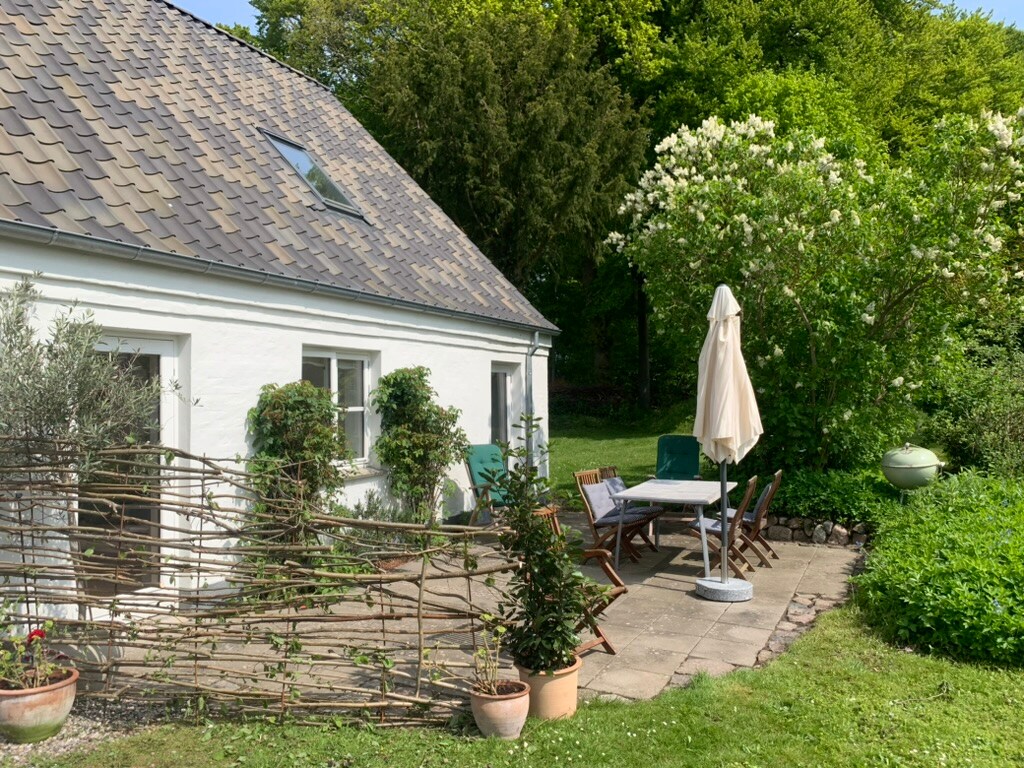 Acogedora casa con terraza privada y acceso a un gran jardín. Hay acceso directo al bosque, donde en 5 minutos a pie se puede disfrutar de Svendborgsund y 15 minutos a pie de la zona de baño en el estrecho. La casa está a 10 minutos en bicicleta del centro de Svendborg. La casa es una casa independiente, junto a la casa principal, donde viven los anfitriones. La casa tiene dos habitaciones, un baño grande y una sala de estar con cocina más pequeña pero totalmente funcional. TV con Apple TV. A 5 minutos a pie de las tiendas, donde se puede cargar el coche eléctrico.