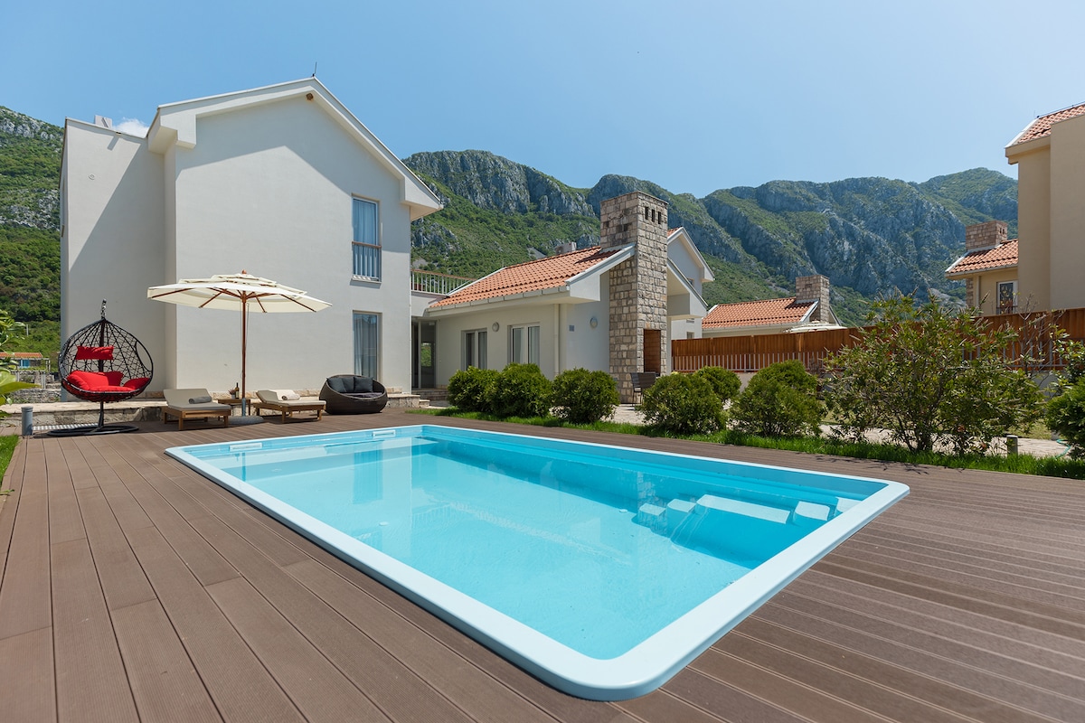 ✨ Villa de estilo escandinavo | Piscina climatizada y vistas al mar Escápate a esta elegante villa de 3 dormitorios y 2 baños en Prčanj, donde la comodidad moderna se encuentra con el encanto rústico. Date un chapuzón en la piscina climatizada, sumérgete en las hermosas vistas al mar y disfruta de comidas largas y relajadas con una cocina totalmente equipada y barbacoa. Diseñada cuidadosamente con una mezcla de minimalismo escandinavo y carácter montenegrino, esta villa es perfecta para familias y amigos, a poca distancia a pie del mar. ¡Ven a relajarte, explorar y crear recuerdos inolvidables!
