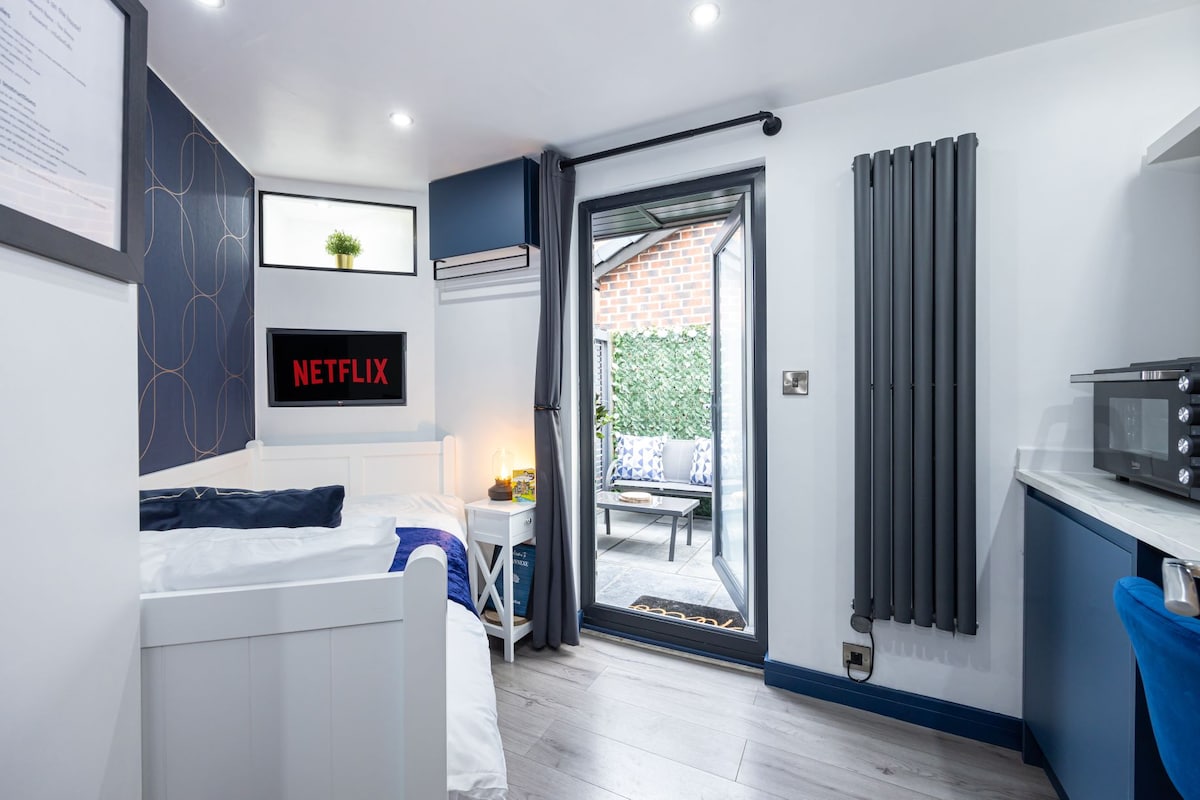 Modern Single Bed Studio + Patio 2 mins to Poynton