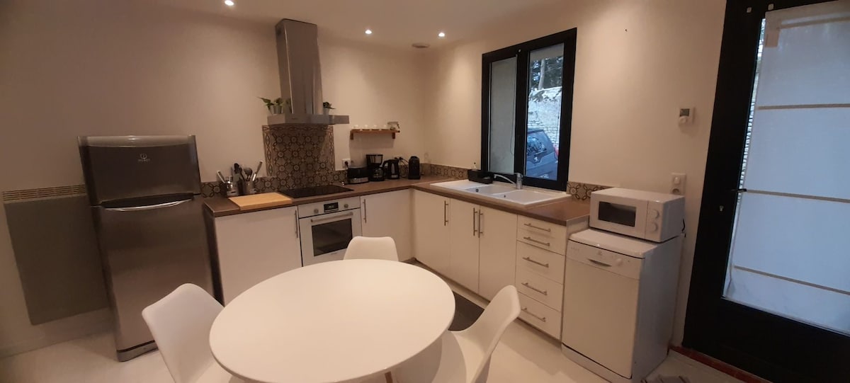 El alojamiento FRENTE AL MAR se renovó por completo en la primavera de 2020: aislamiento-electricidad - pinturas -parquet flotante 12 mm roble rubio - calefacción - cuarto de baño con ducha 1 m x 1 m-WC. Muebles nuevos (cama de 140 + ropa de cama/mesas + sillas/4 sillones + cojines + mantas/convertible de 160/mesas nido/cocina equipada + horno de pirólisis +placa de inducción + nevera-congelador + cafetera + tostadora + utensilios de cocina... Decoración marina cuidada/limpieza asegurada