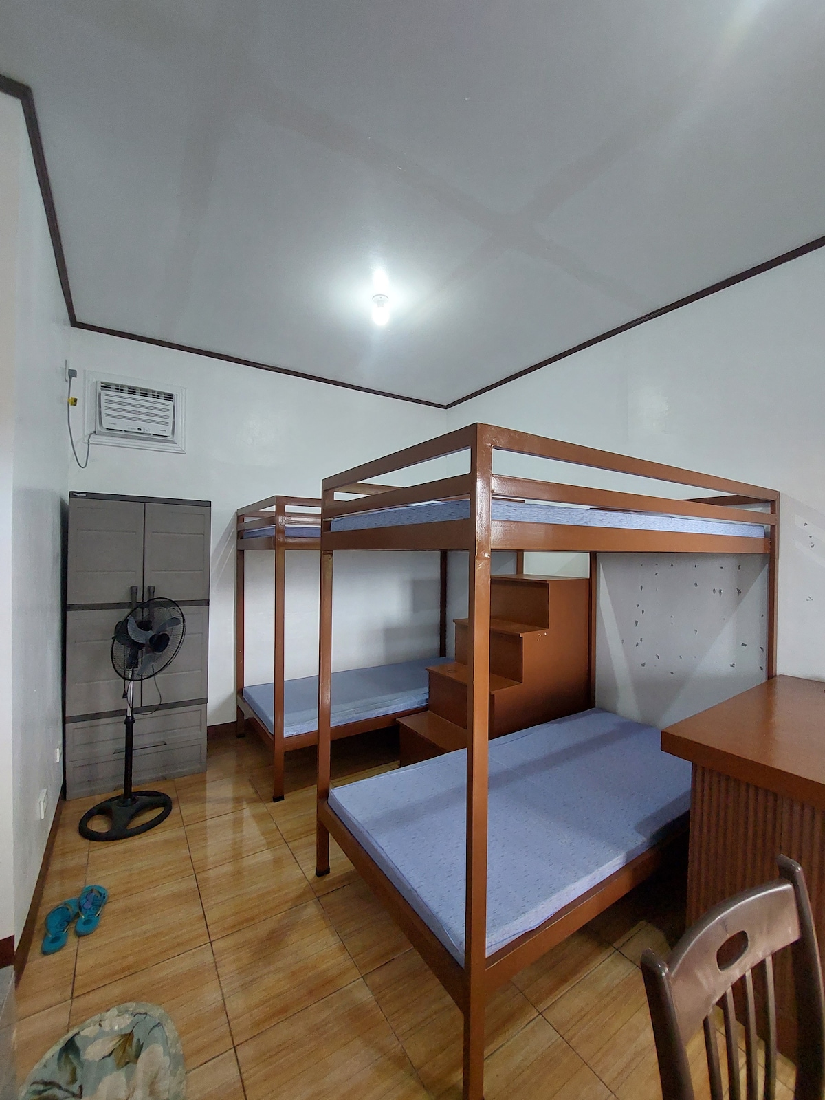 Habitación limpia y relajante. La ubicación se encuentra a 1 km de la ciudad de Tabaco. La unidad está ubicada en el segundo piso con un tamaño de 722x274 cm y tiene una cama tamaño queen y una cama extraíble y un colchón cómodo. La unidad tiene su propio baño y una pequeña cocina si deseas cocinar. Hay una tienda de sari-sari y un restaurante cerca donde podés comprar tus alimentos.