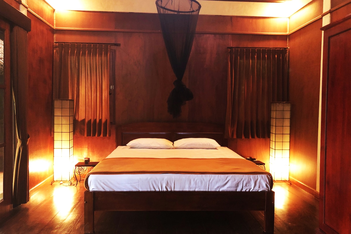 Queremos que nuestros huéspedes disfruten de la experiencia balinesa completa. Nuestros cuatro hermosos bungalows privados de madera están ubicados en una zona tranquila de North Canggu. Nuestro objetivo es que nuestros huéspedes puedan relajarse por completo de sus ajetreadas vidas en un entorno cómodo y tranquilo. Cada bungalow está rodeado por un exuberante jardín, lo que le da a cada huésped su privacidad. La piscina compartida está bajo árboles gigantes de mango y aguacate. Echo Beach y el moderno restaurante y tiendas de Canggu están a solo 5 km. ¡A solo 10 minutos en scooter por la carretera!