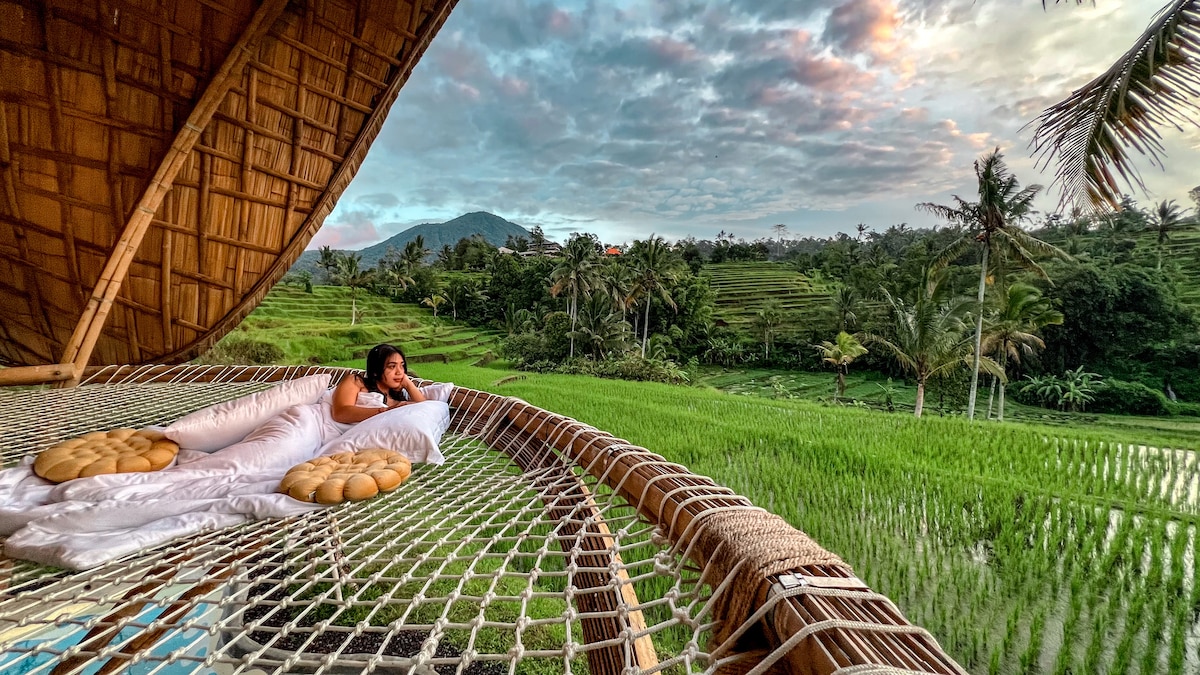 Un refugio de montaña que bordea el sitio del patrimonio de la UNESCO Jatiluwih, equipado con una piscina frente a los arrozales, un gran jardín y un cenador. Te sumergirás en la vida rural balinesa lejos de las multitudes de turistas, pasando unos días haciendo senderismo, relajándote en las aguas termales, visitando el templo de Batukaru y el parque de mariposas, disfrutando de un masaje frente al atardecer, investigando la iconografía local en las iglesias, con comidas servidas por los vecinos o un restaurante balinés cercano.