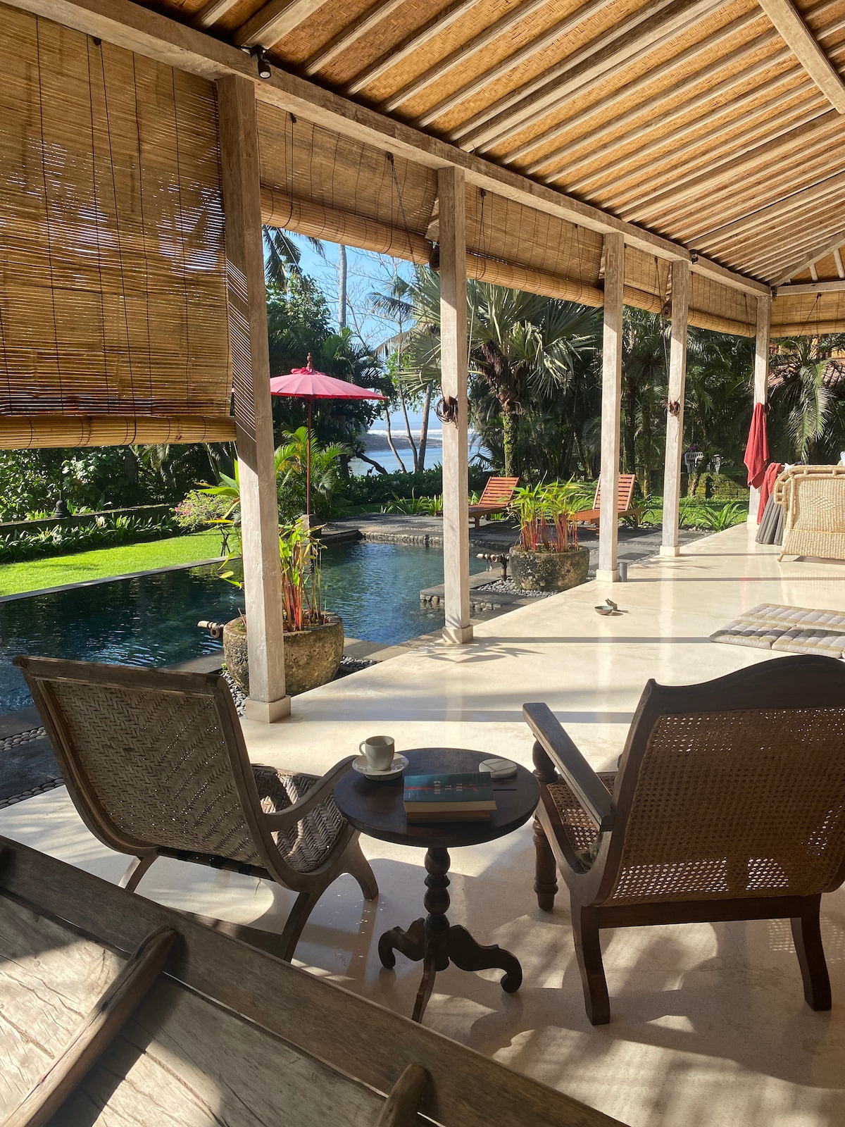 Private 3 bedroom villa with pool, daily breakfast, housekeeping and complimentary transfer to Balian. Set in extensive tropical gardens beside the sacred Balian River with direct access and views to the beach and surf breaks. If you are trying to capture the Bali of old this is the perfect location to relax and unwind in a traditional village setting, yet within easy walking distance of cafes, restaurants, local market and yoga and meditation classes.
