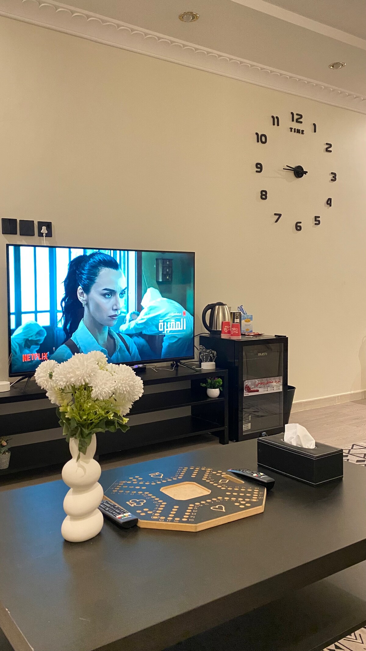 Tu segundo hogar, La elección distintiva de tu vivienda en Tabuk con entrada inteligente, diseño moderno y estacionamiento en una calle comercial de la calle más importante de Tabuk El apartamento tiene instalaciones integradas Televisión inteligente con suscripciones para ver Netflix y YouTube Premium. y una cocina con suministros y electrodomésticos completos Todas las cosas están disponibles y listas para ofrecer cualquier requisito que desees para disfrutar de tu excelente estancia.